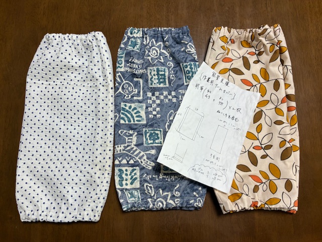 所属団体で能登支援の協力として紹介された腕カバーを製作しました。家には余っている布が少なからずらずあるので活用できればと探して、3組作ることが出来ました。余り切れでと思ってましたが、意外と布を使うことがわかり片方取れても、もう片方は足りないとかで、布を接いだりもしましたが、布が生かせて満足です。