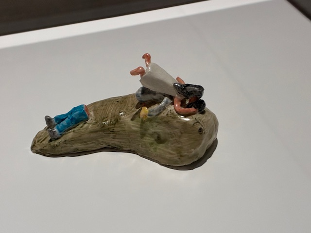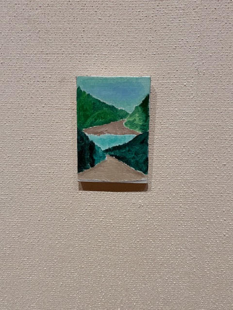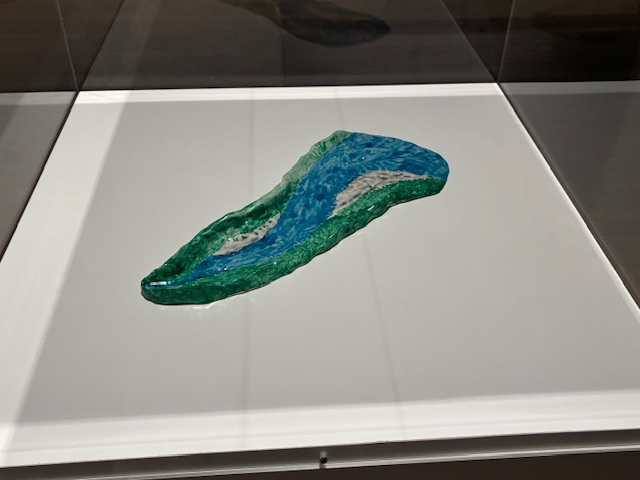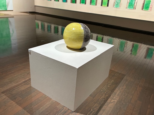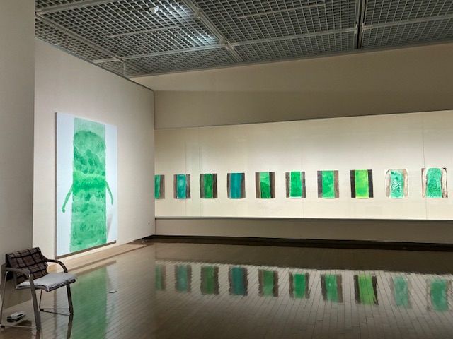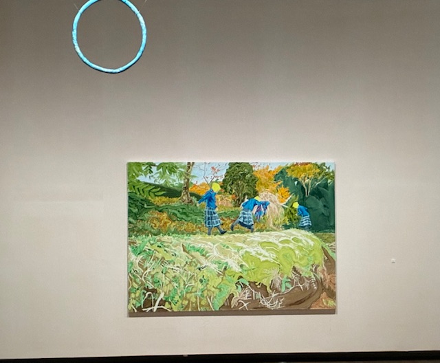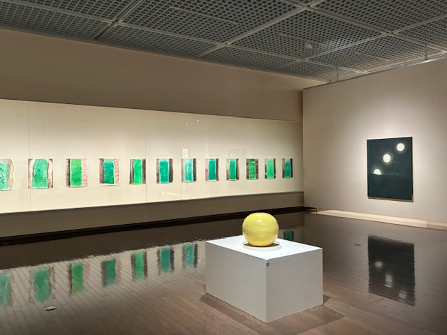 光をテーマに、ひとつの物が光の変化で変わっていくところや、女の子たちがいつの間にかサギやフナに変身していく様子が描かれていました。これは大きな観点からみると、人もフナもサギも大して変わりはないということなのか?同じ作者の陶芸作品も置かれていて、景色を一部切り取ったようなものもありました。きれいな緑の風景、1枚だけ富士山の描かれたものもありました。