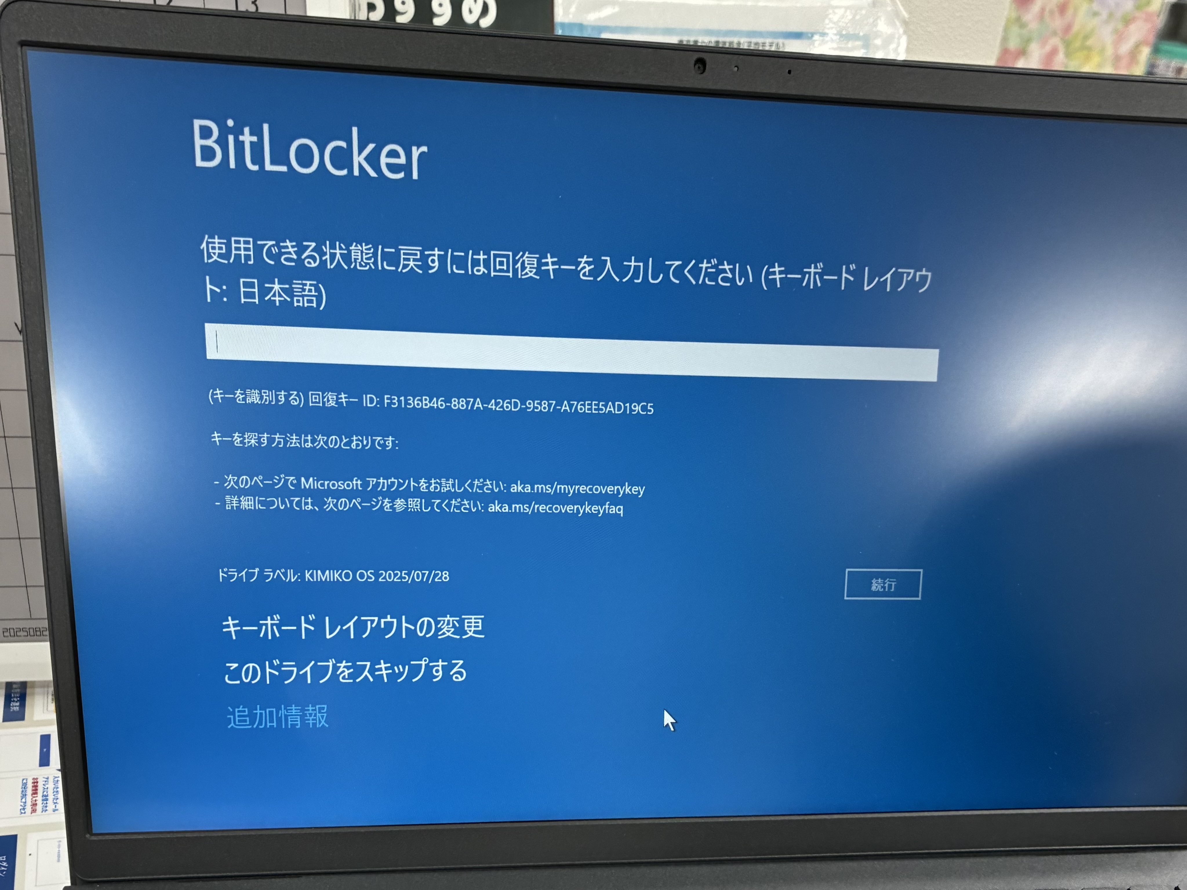 この「ビットロッカー」なるもの、Windows11では初めからついていてそれが作用したわけですが、これを解除するには48桁の暗証番号が必要で、それを見つけるには自分のMicrosoftのアカウントを開くと見つかるかもしれないとある。スマホから調べたが無かった。終わりだ、開けられない。店の人は預かって直しますというが修理に当たり3万円くらい費用がかかるとのこと。また最悪初期化することになると。はあ?まだ2か月もたってないのに、訳のわからないセキュリティ対策をつけられて、店もMicrosoftも嫌いだ!けど、ともかくここは一旦持ち帰ろうと思った。たまたま、買った時の領収書なども持ち合わせていなかったので、また改めてということにした。