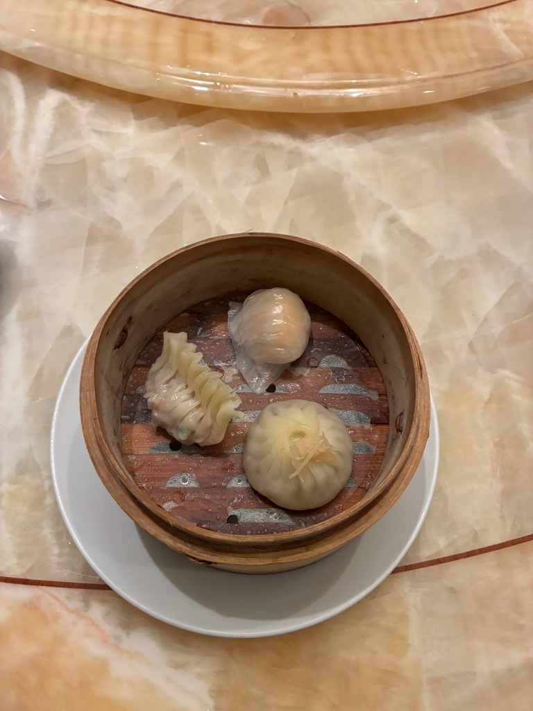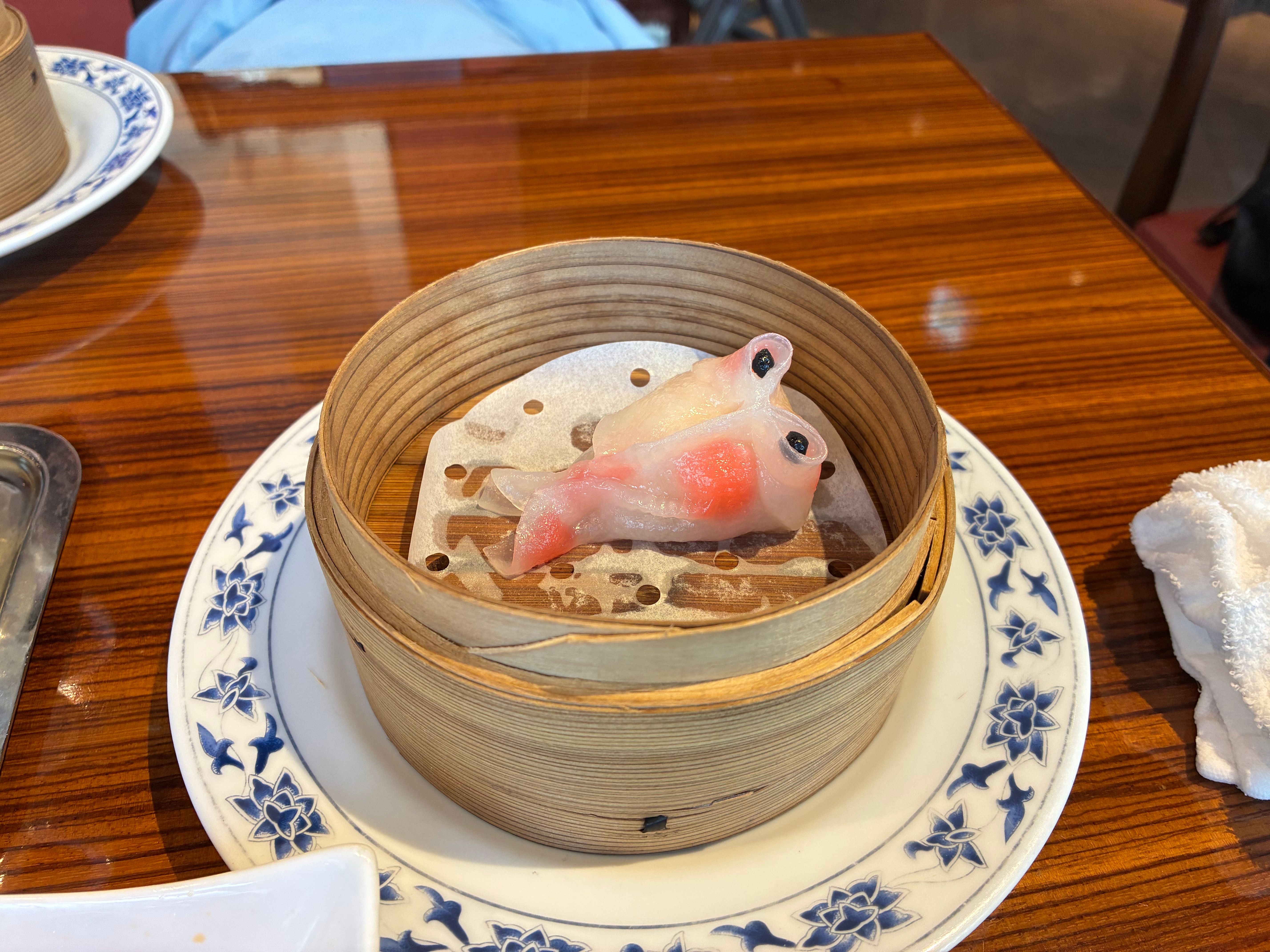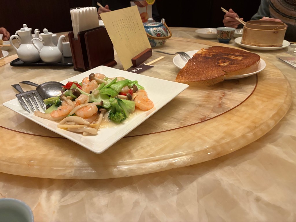もう1人の友人とも合流してから、ランチのお店探し。月曜休みの店もあってお目当てを何軒か巡った後、重慶飯店を見つけました。この店は何軒かあり今回の店は横浜店です。ビルの1階がお土産コーナー、2階がレストランとなっています。金魚を模した小籠包があるランチコースを注文しました。大盛りを皆でシェアするのでなく、何種類かをバイキング皿のような皿に盛り分けてあるので手間いらずでおしゃべりに専念できました。居心地の良いお店でした。