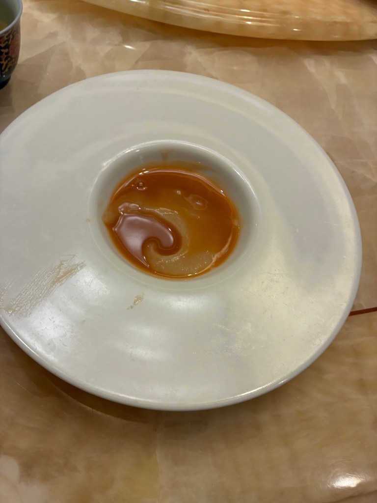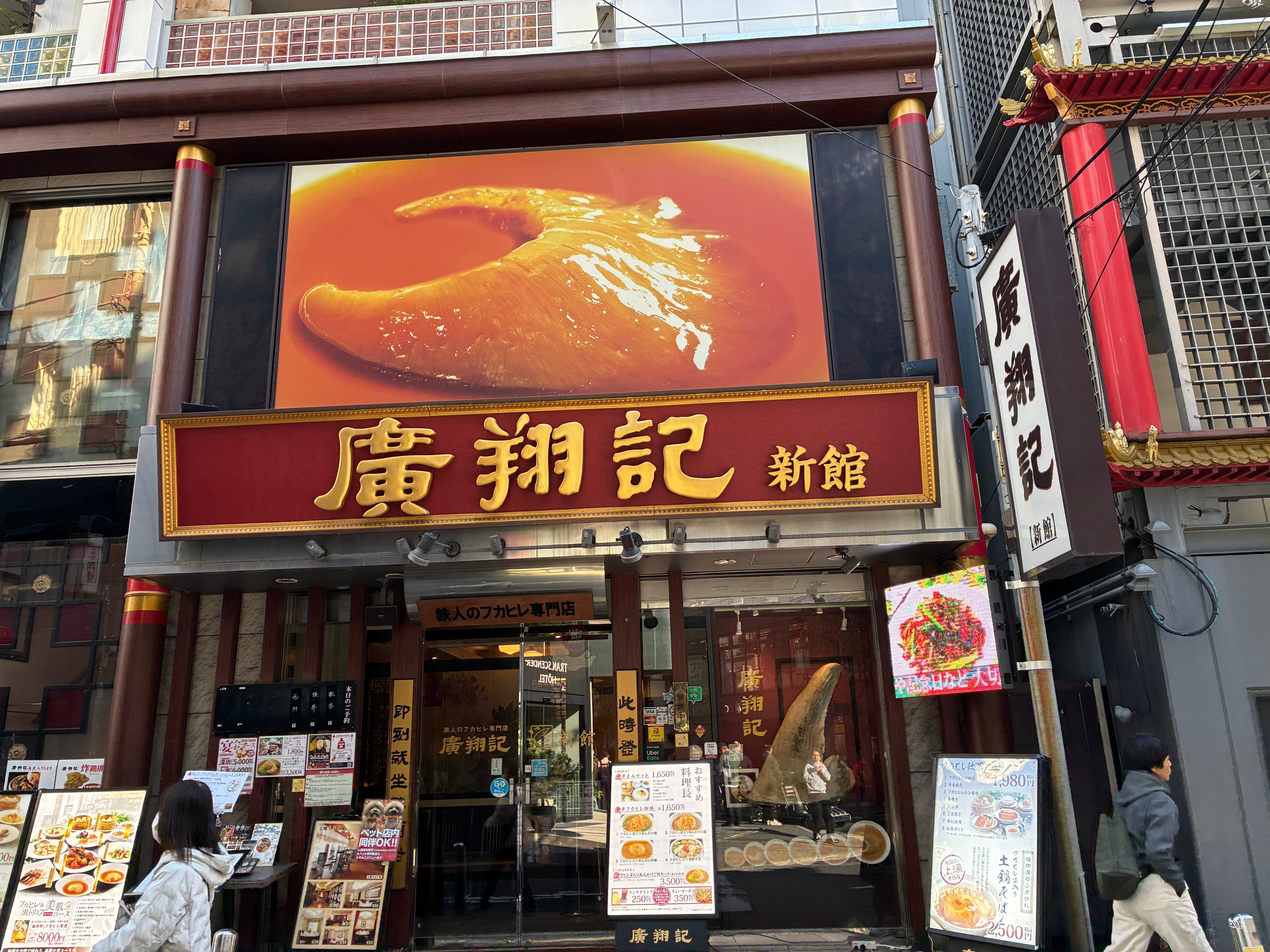 お目当てのレストランは、廣翔記新館、フカヒレ料理のレストランです。こちらは、中華料理店らしく円卓を囲んで5人でいただきました。