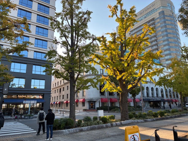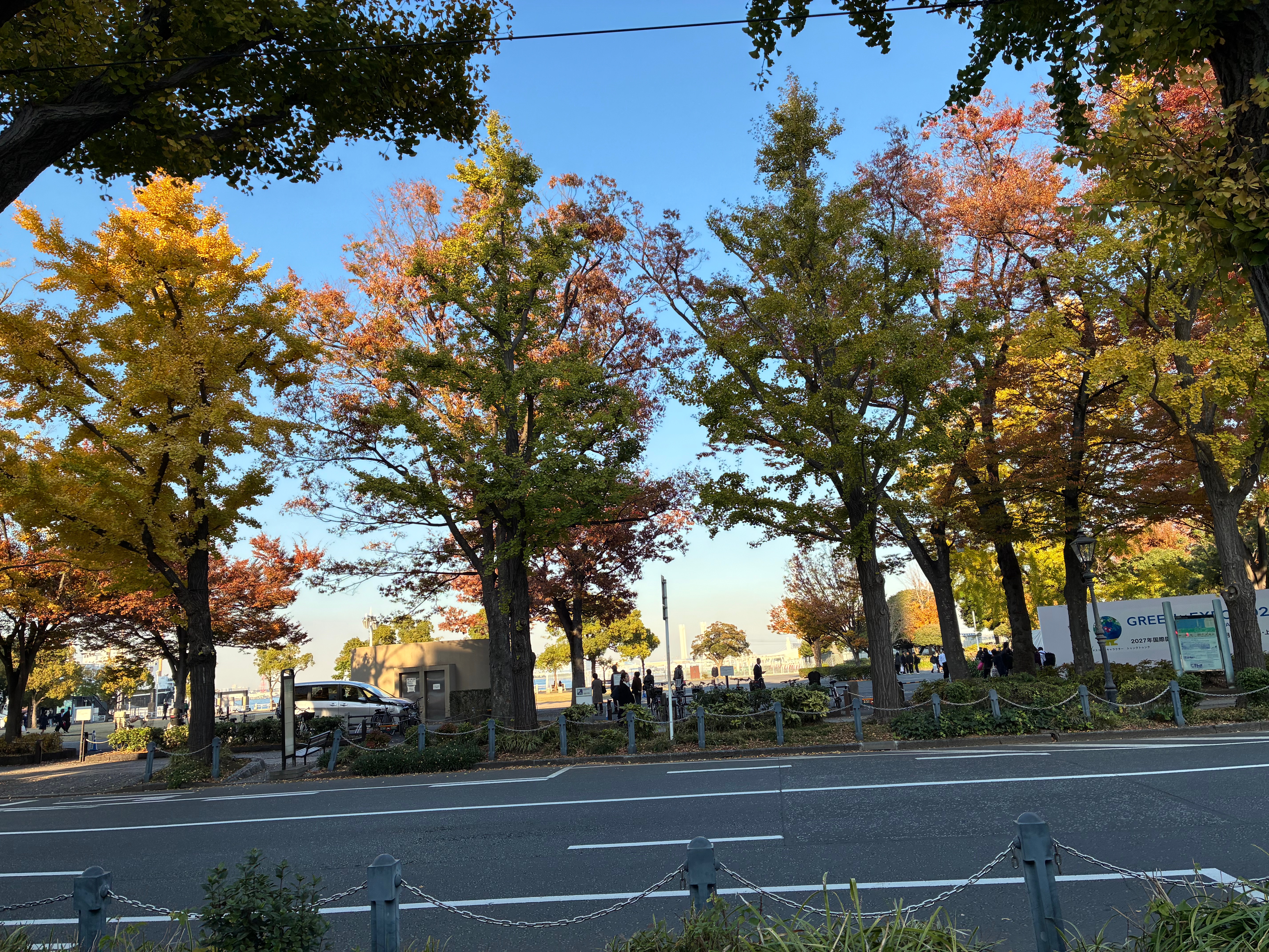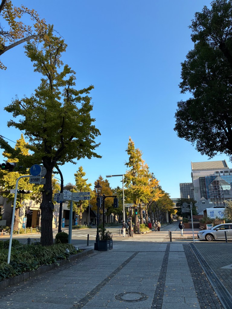 廣翔記新館でのお昼を終えた後は、この日もとても良いお天気で、山下公園の方へ向かいました。銀杏の黄葉を見るのが1つ目的でしたが、1人名古屋方面から参加した友人がいたので、どこか観光しようとなりました。氷川丸見学は却下され、次に向かったのはマリンタワー。