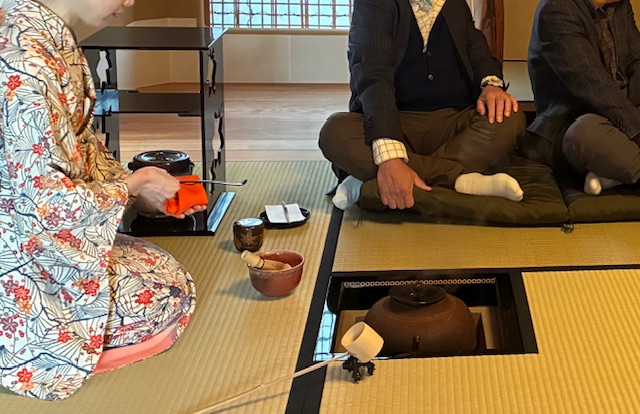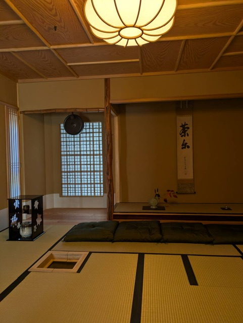 お茶室を新しく設置したのでということで、こちらでの集まりは2回目だったようです。私は今回が初めてで出席の連絡も最後の1人でした。というのも幹事さんの趣向で出席をお伝えしたら今回の集まりだけのライングループに入り、そこから連絡を受けるようなやり方でしたので、14人目の出席者ですと紹介されました。(この後で、欠席が2名あり)