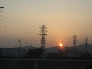 帰り道、偶然にも、山の端に夕日が沈む瞬間をキャッチ。