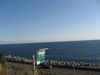 この陸橋の向こうの方へ570m、徳川家康公の命でできた大堤があります。