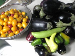夫は、ミニトマトを中心に、私は、美味しそうなナスを選んで袋に入れました。