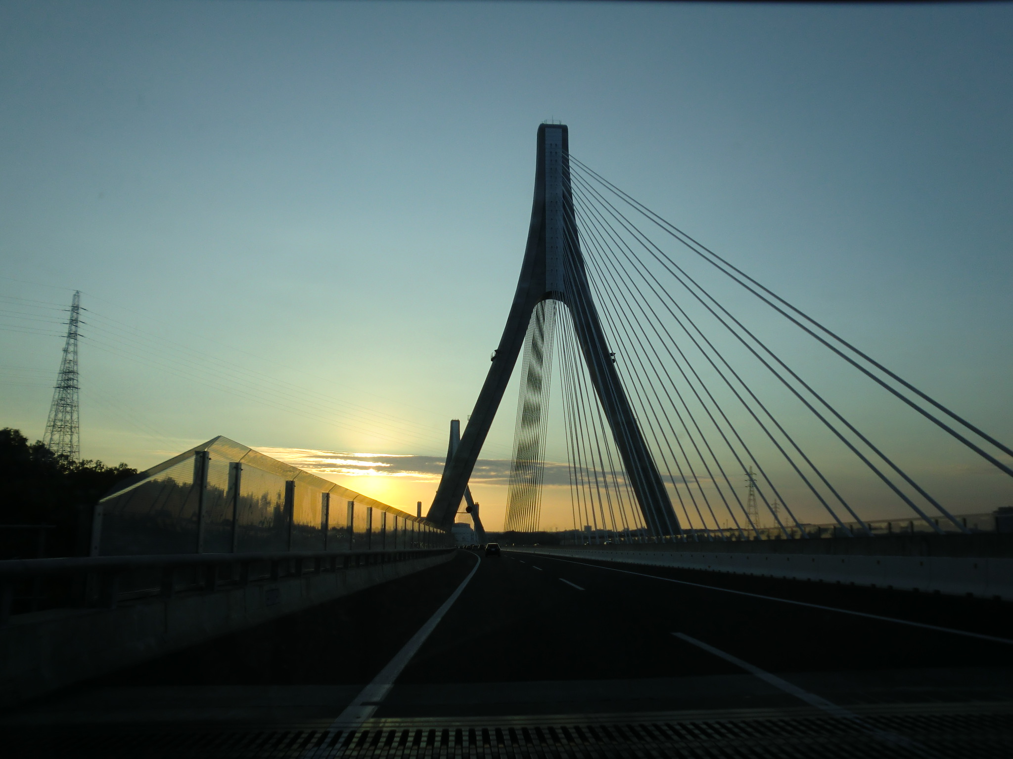 その後東海北陸自動車道から、東海環状自動車道に入り、豊田JCTで伊勢湾岸自動車道、四日市方向に進みました。伊勢湾にかかるつり橋と夕日がきれいでした。この辺りまで、無言だったナビは、途中から復活し、目的地の桑名のホテルまでエスコートしてくれました。午後5時過です。