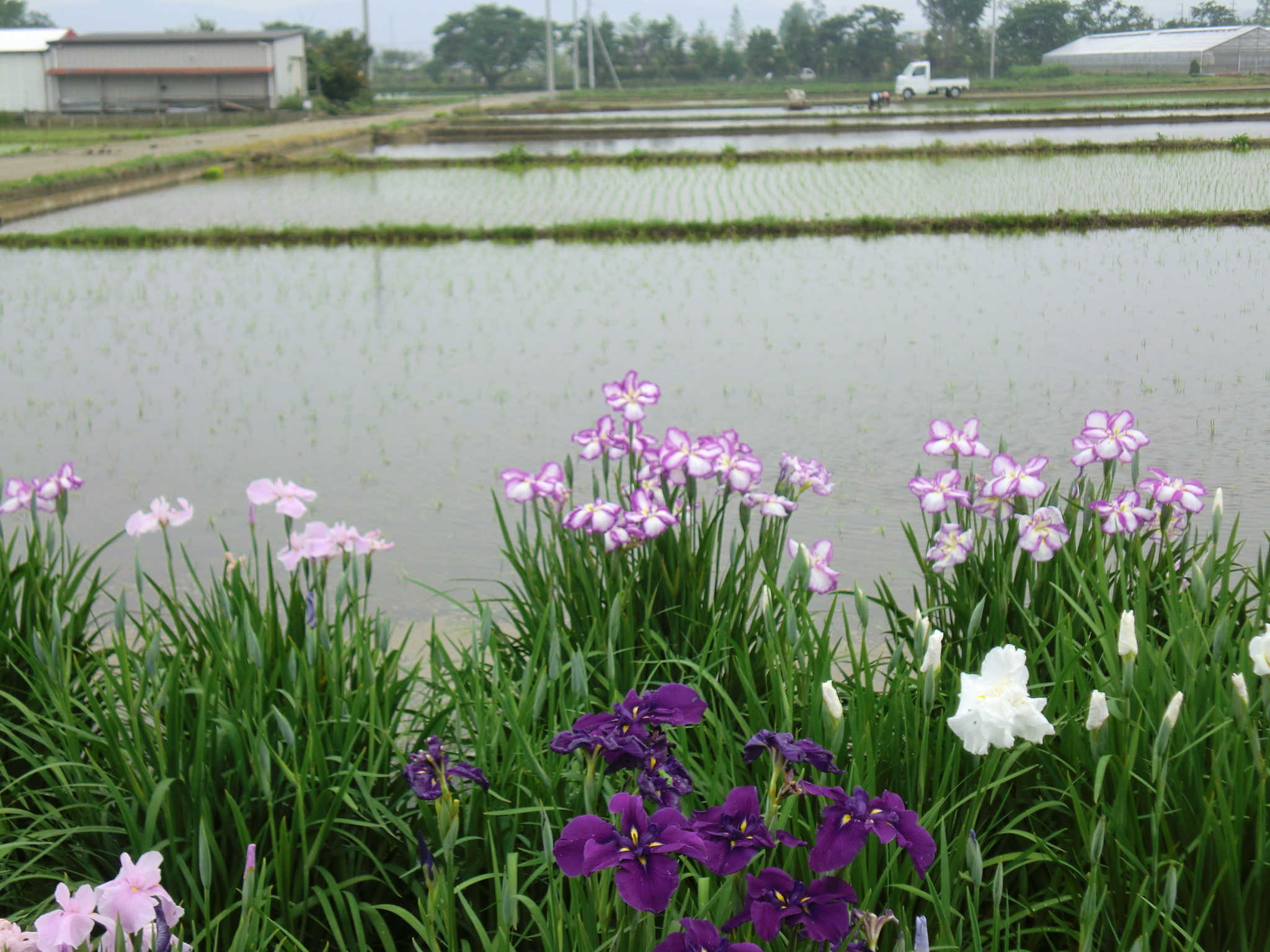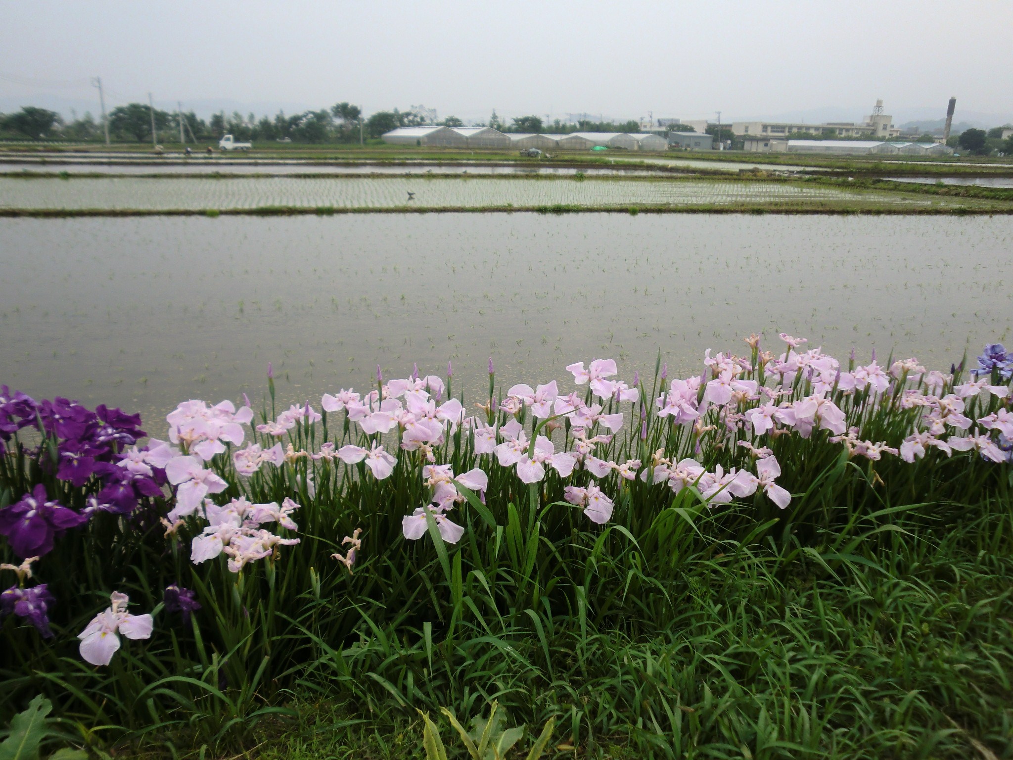 花菖蒲の周りは田んぼだから、これから夏に向けて青田が広がりますね。