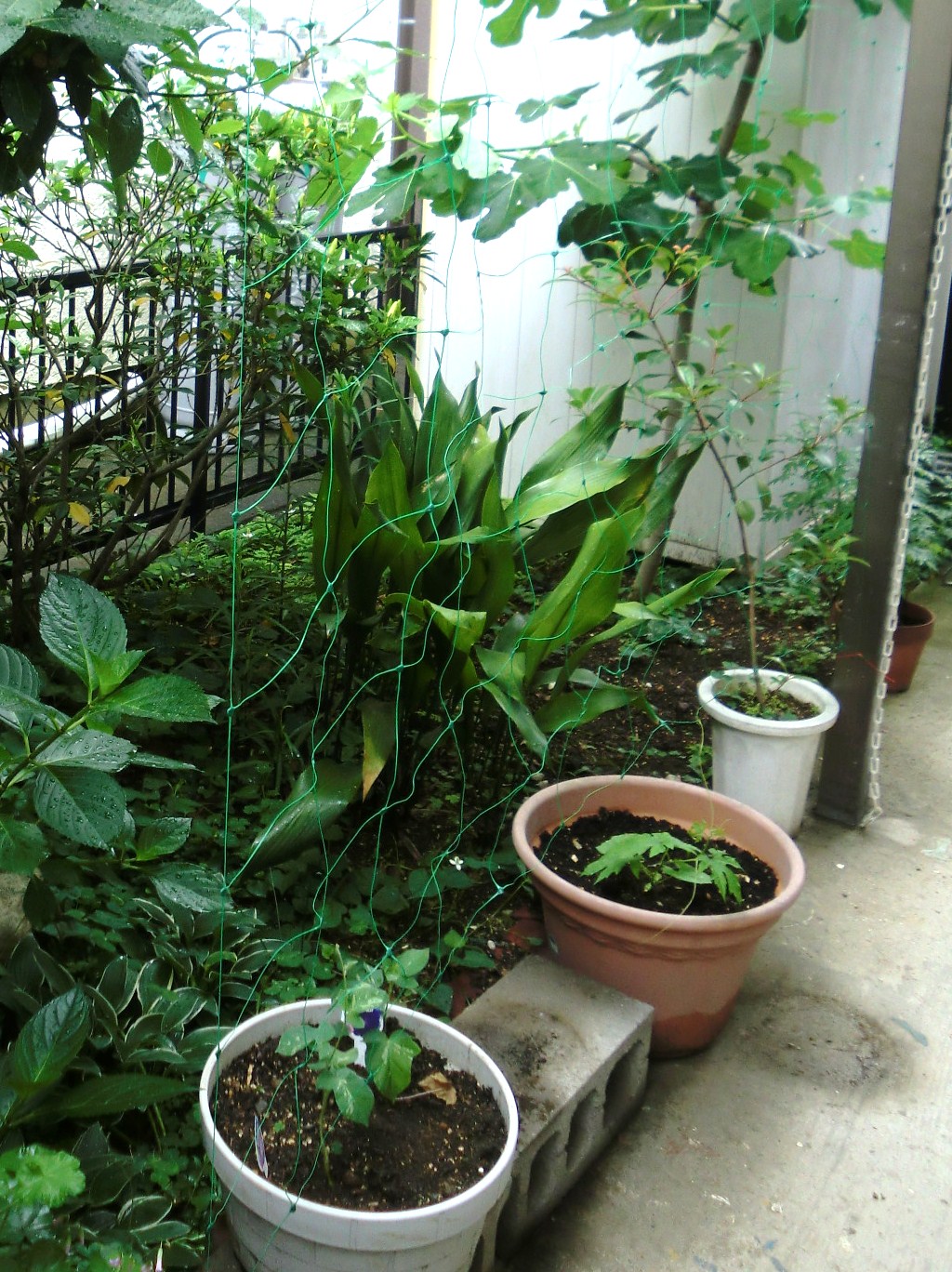 今日は、グリーンカーテン用のネットをセットし、巻きホースも用意万端、準備しました。