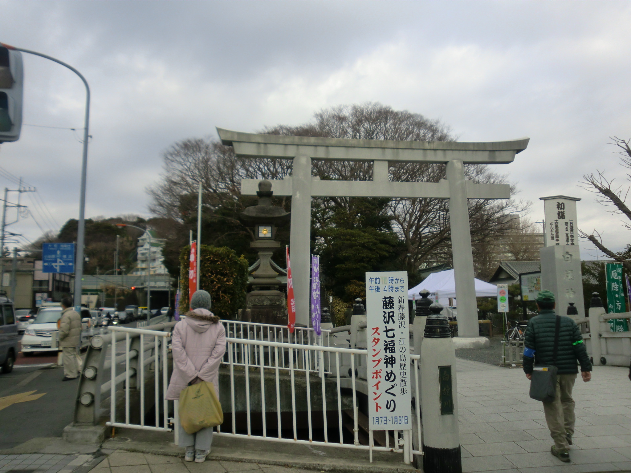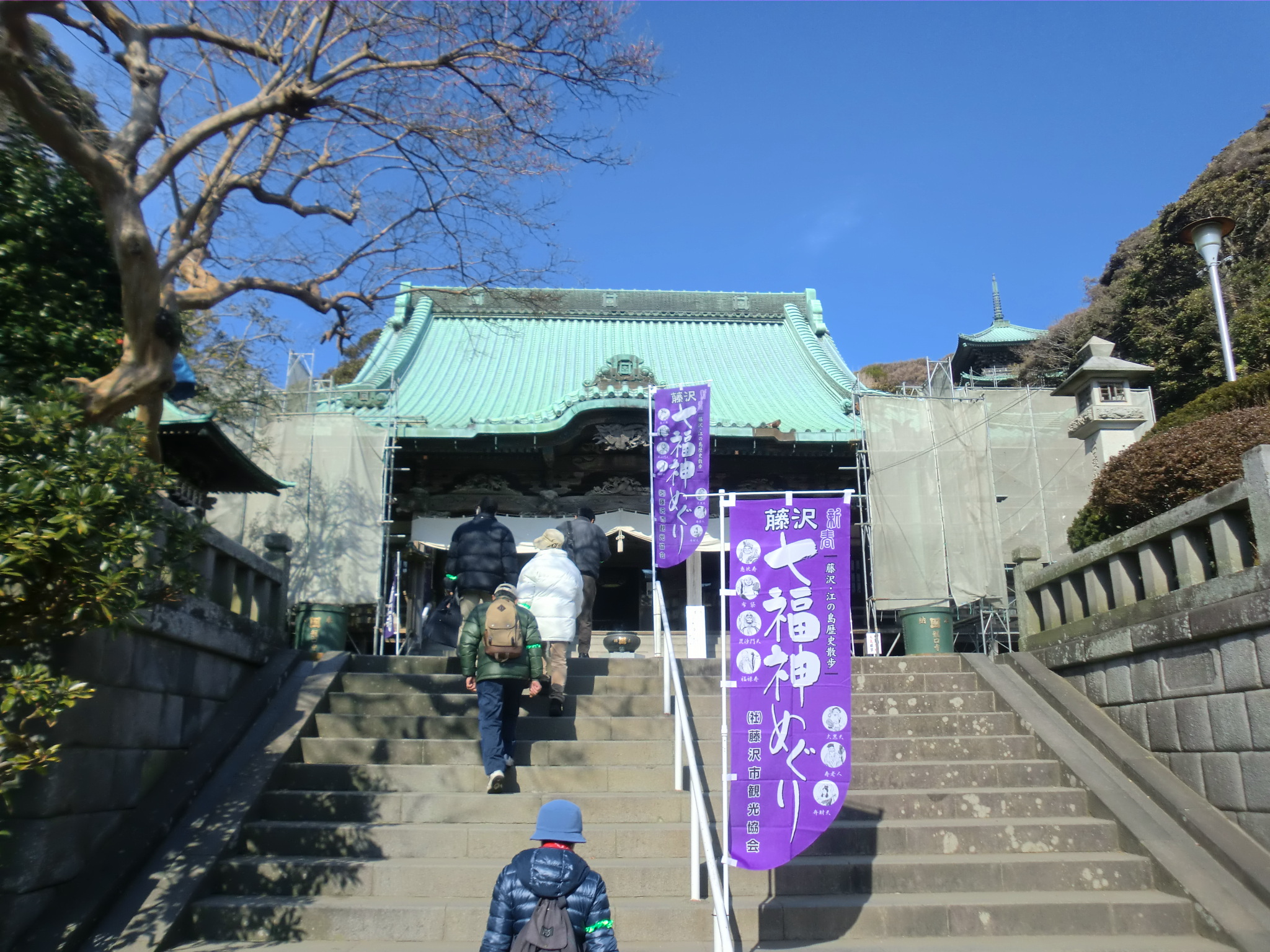 昨日の土曜日は、夫が申し込んだ1日行事に参加してきました。「藤沢の七福神巡り」で、藤沢駅に集合ということだけ聞いていましたが、詳細は行って見るまで知らなく、集合場所で、10人のグループで1人のボランティアガイドさんと徒歩、1部江の電で8カ所まわるということを聞いたときはちょっとびっくりしました。約10Km,歩数計で2万歩を越えますということでしたので。