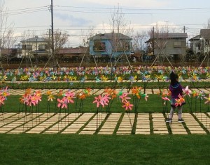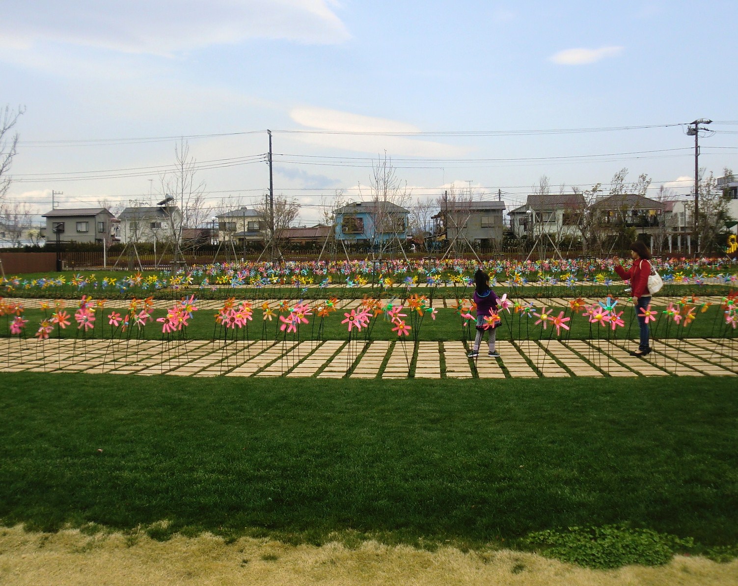 エントランスの庭に、あのセンターフィールドに飾られていた風車が移動し、風に吹かれて勢いよく回っていました。場所的には、こちらの方が密集具合と言い、相応しい感じで、あらためて壮観な風景。いよいよ、4月2日からは、持ち帰りができるようです。子供向けの呼びかけではありますが、このペットボトルの風車、モグラよけになると聞いたので、1本欲しくなり始めています。
