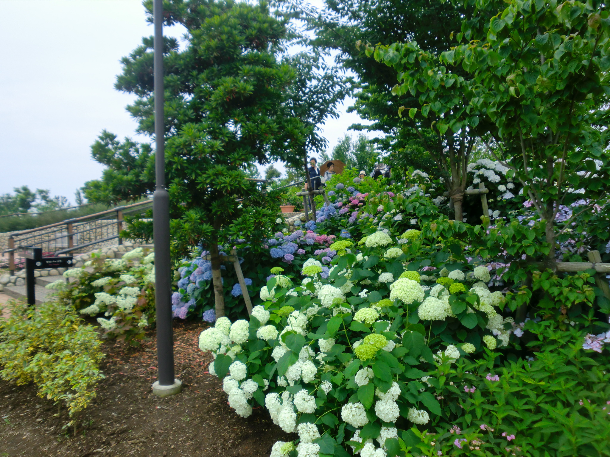 一仕事終えての帰り道は、アジサイが今年は良く咲いたということで、ぐるっと回っていきました。アジサイエリアは確かに、今を盛りとばかり、様々な種類のアジサイが咲き乱れていました。