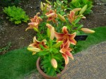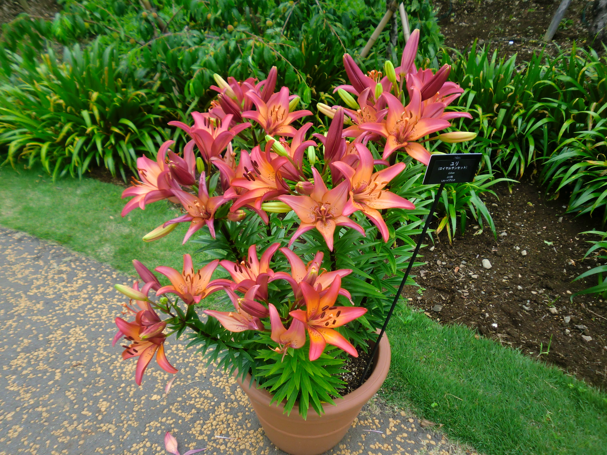 また、ユリのエリアも見事でした。大輪のユリが群れをなして、あちこち咲いているのも素晴らしいですが、大きな鉢植えにも色んな色のユリが大きな花を咲かせていて、どれも見とれる感じ。