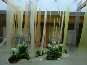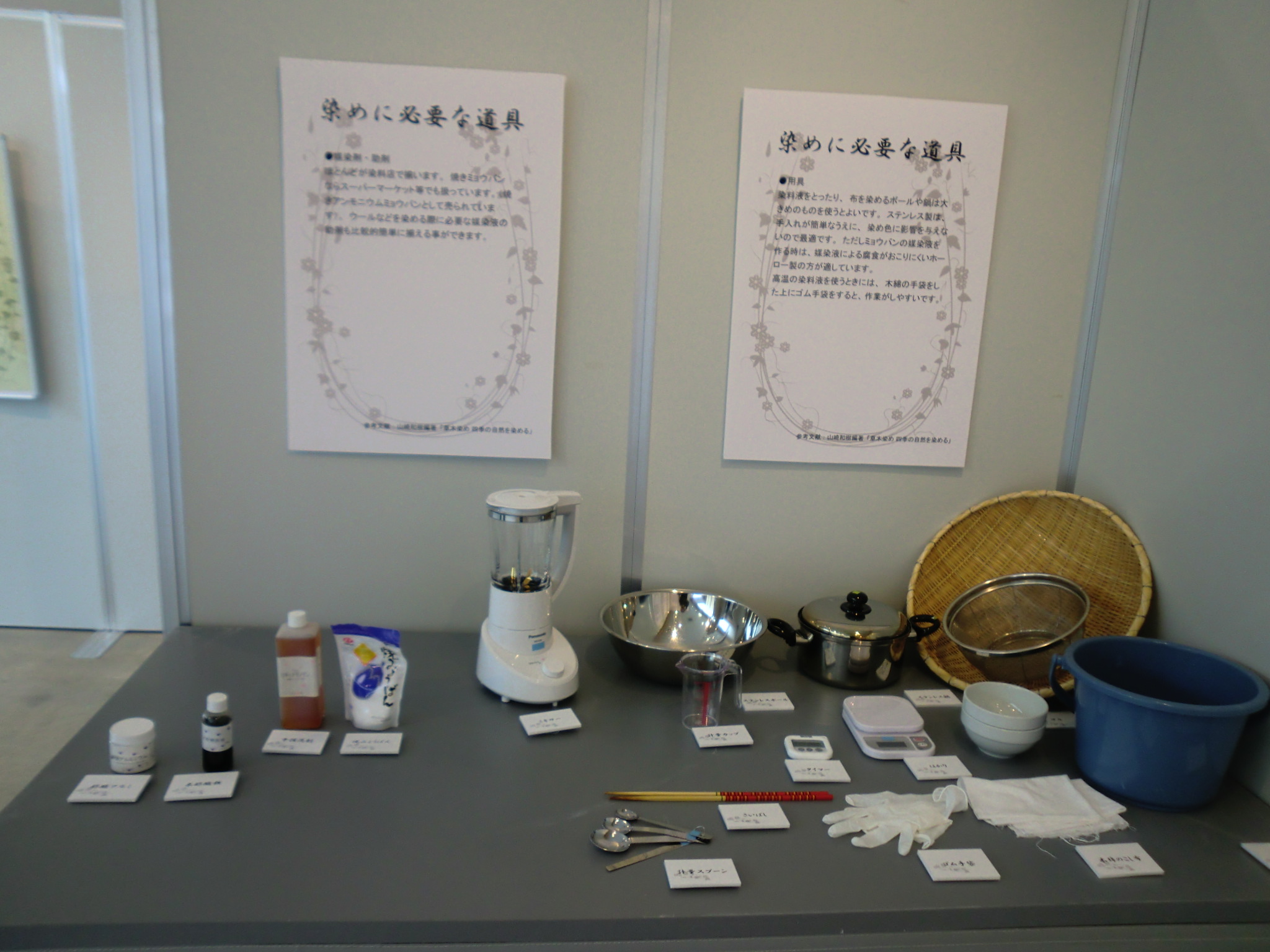 出口近くの催し物の部屋を覗くと、草木染めの展示がありました。花ごとに説明があり、方法や道具の紹介もされていて、いつか機会があればやりたいな・・・と、夢見気分で眺めつつ花菜ガーデンを後にしました。