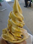 11時過ぎでしたが、私たちが眺めているうちに、詰め放題は終了しました。暑い日で小腹が空いてきた頃だったので、桔梗信玄ソフトをみんなで食べ、涼感たっぷりお腹の足しにもなり、なかなかヒットでした。