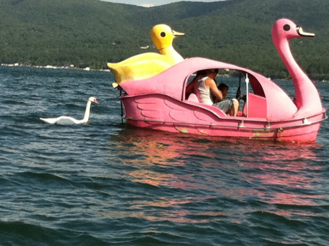 岸からみていると、優雅に見えるスワンの舟は、意外と難しいものというのがわかりました。