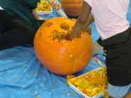 巨大カボチャは、今年も親子サポーターたちによって、ハロウィーンの顔ができあがりました。