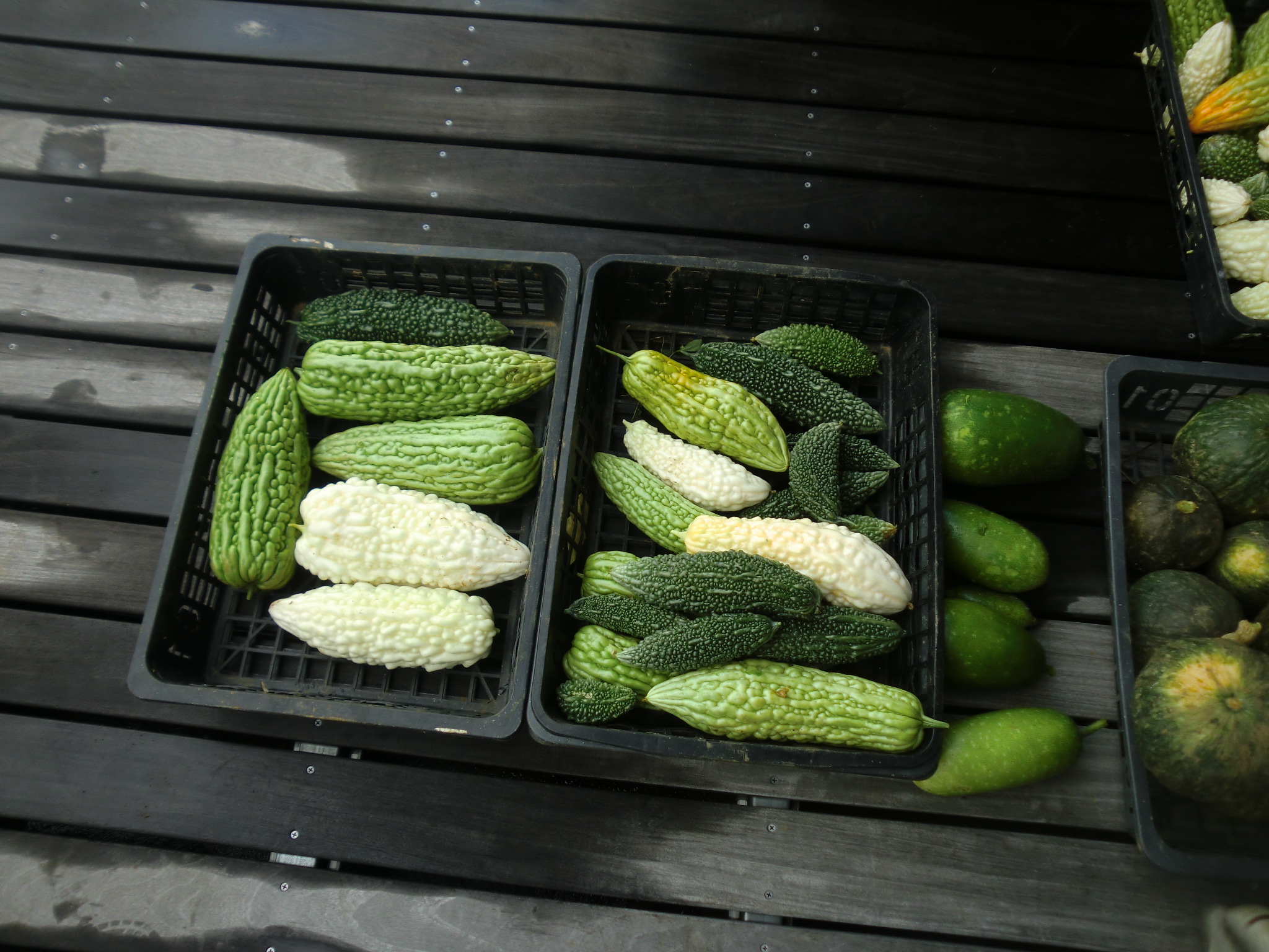 ゴーヤは、今年も堅調、白いゴーヤの収穫もたくさんありました。