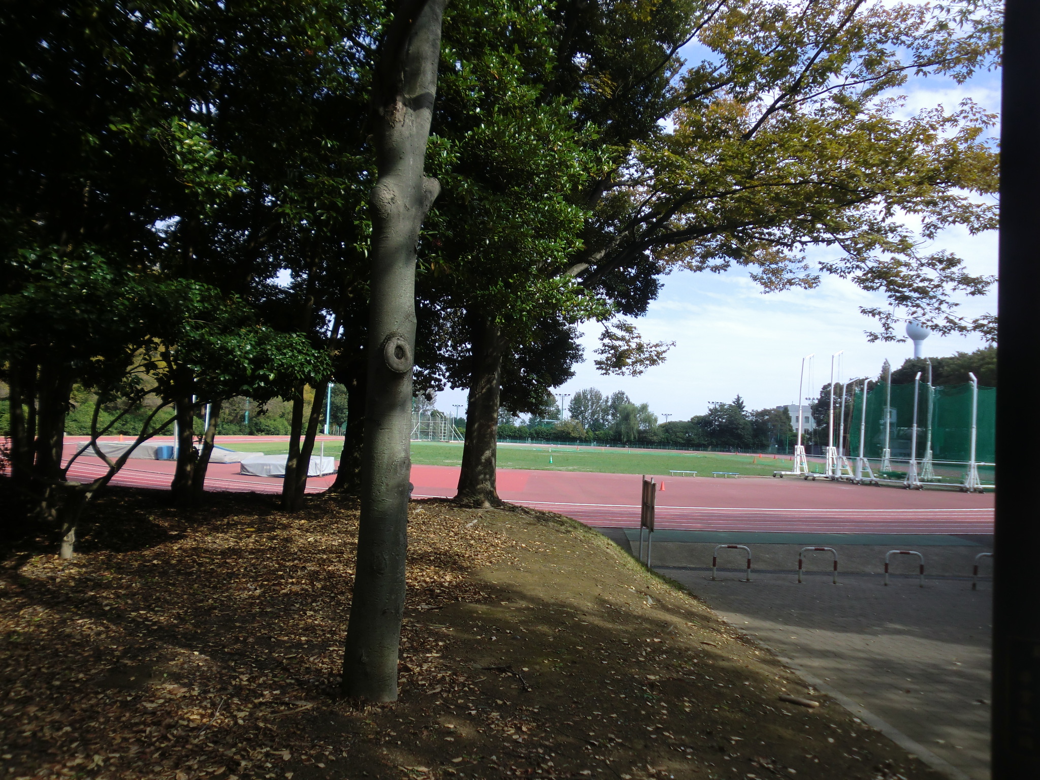 広い公園緑地と思ってしまいながらブラブラ歩いていると、ふと娘が、「家が見える!」・・・確かにグラウンドの向こうに、新築6棟が並んでいるのが見えました。家から大学が一望できたから、お互い様のようです。
