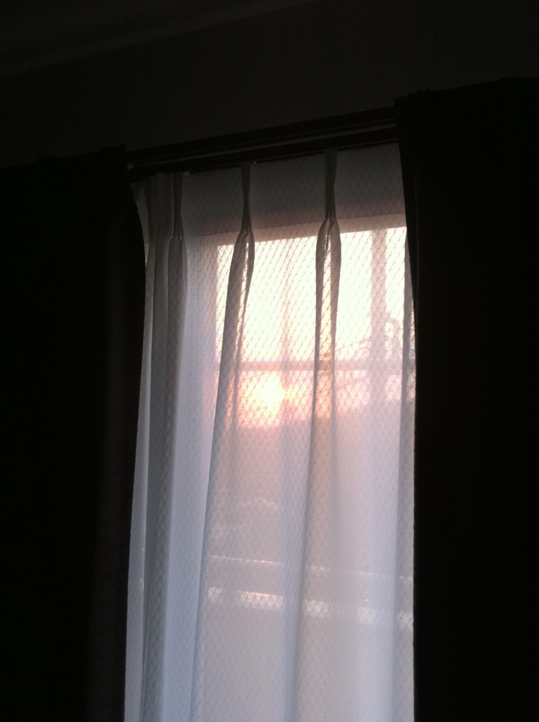 新居の方は、引っ越しの手伝い以来で、その時には無かった、カーテンが全部ついていて印象新たでした。明け方、東のベランダに出ると金星とオリオンがきれいに見えました。また、大きな朝日が見えて、ちょっと興奮!「しあわせのうた」の1番を思わず歌いそうになりました。