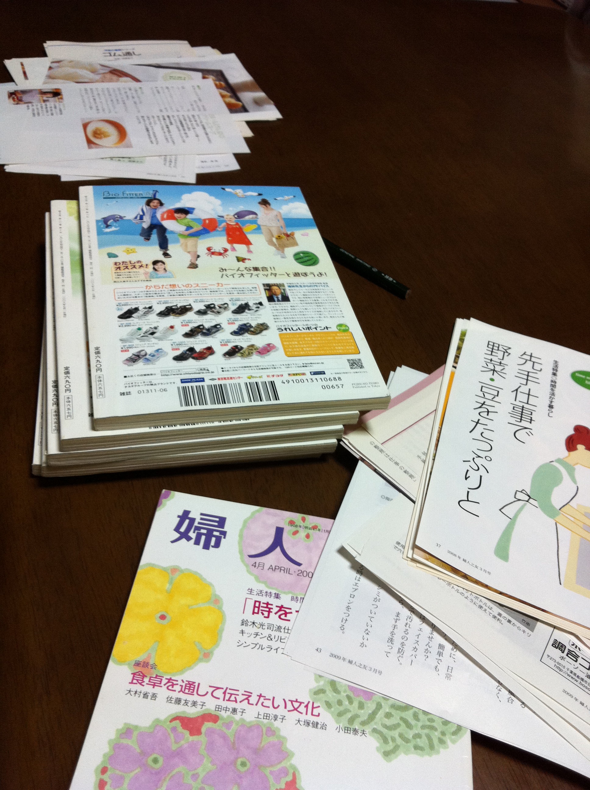 もう20年以上購読していて、初期のころは気に入った記事を切りぬき、料理のレシピは1つの袋に入れるという残し方をしていましたが、その後、1年分を1冊にチョイスして編集するようになりました。前回整理したときは、それがまた変化し、3年分くらいが1冊の編集に。そして今回ですが、2011年分は物入れの本箱に保管。2012年分は今年のものと同じ月のものをもう1度見られるよう、見えるところに置いておきますので、2008年~2010年の3年分を整理しました。