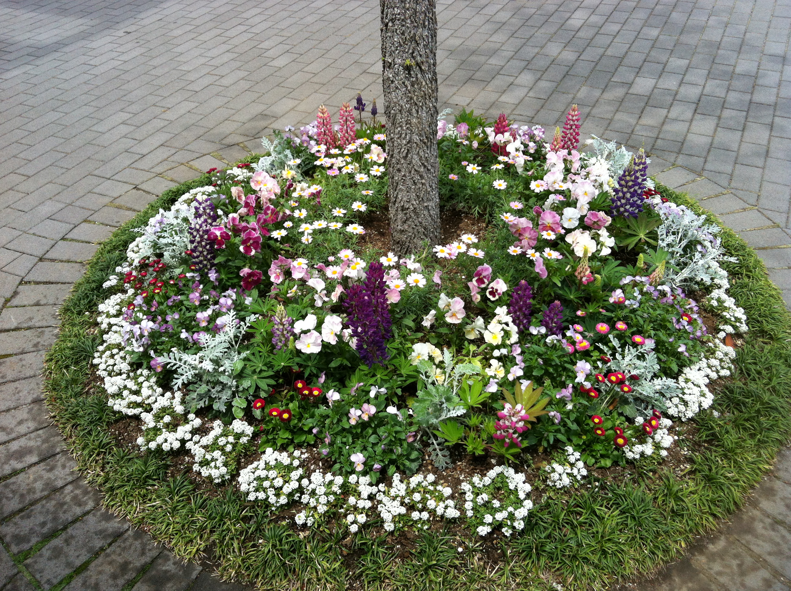見頃の過ぎたチューリップですが、まだかわいらしく咲いていました。品種ごとに丸く植えられていているのが斬新な感じです。