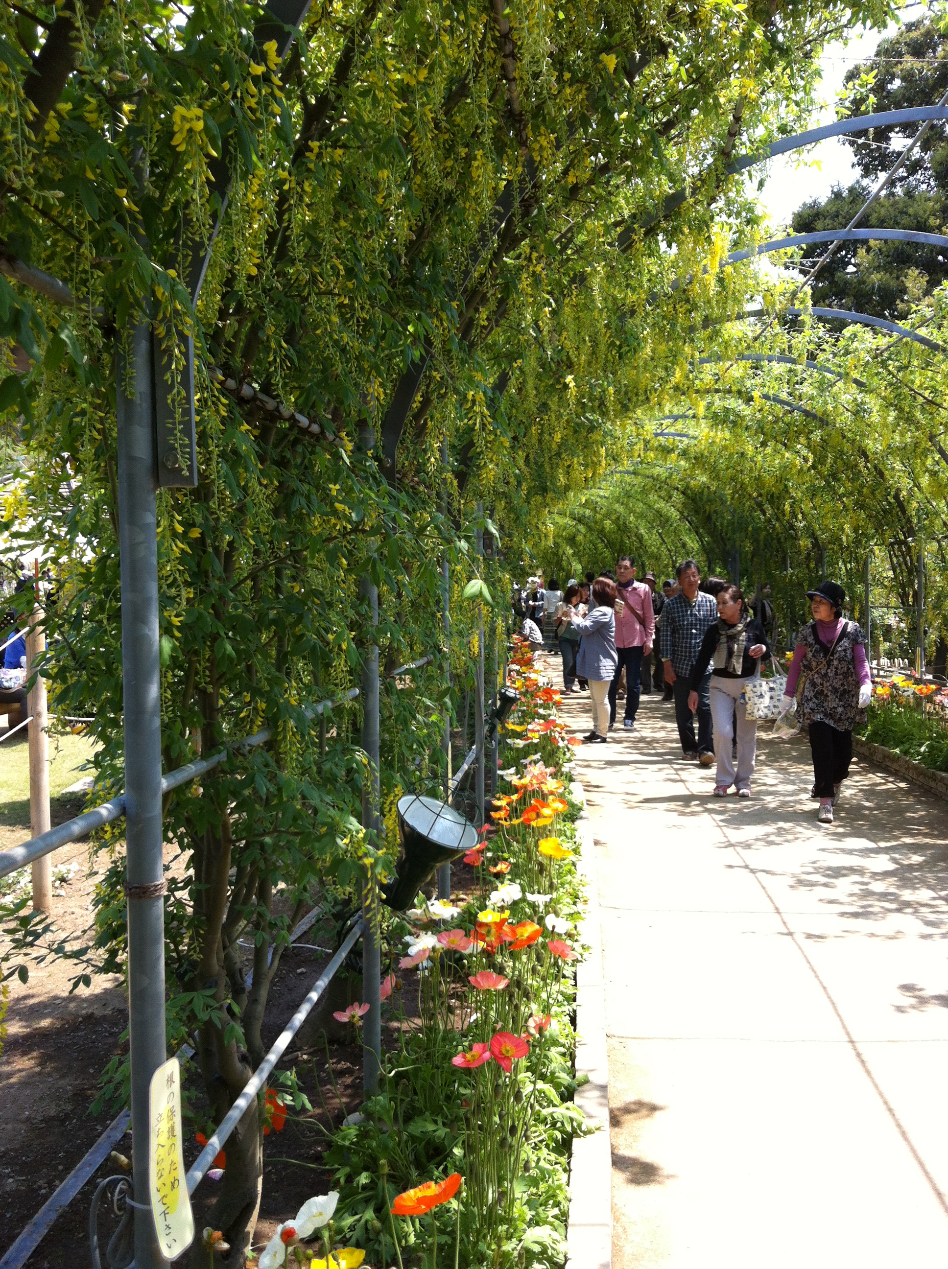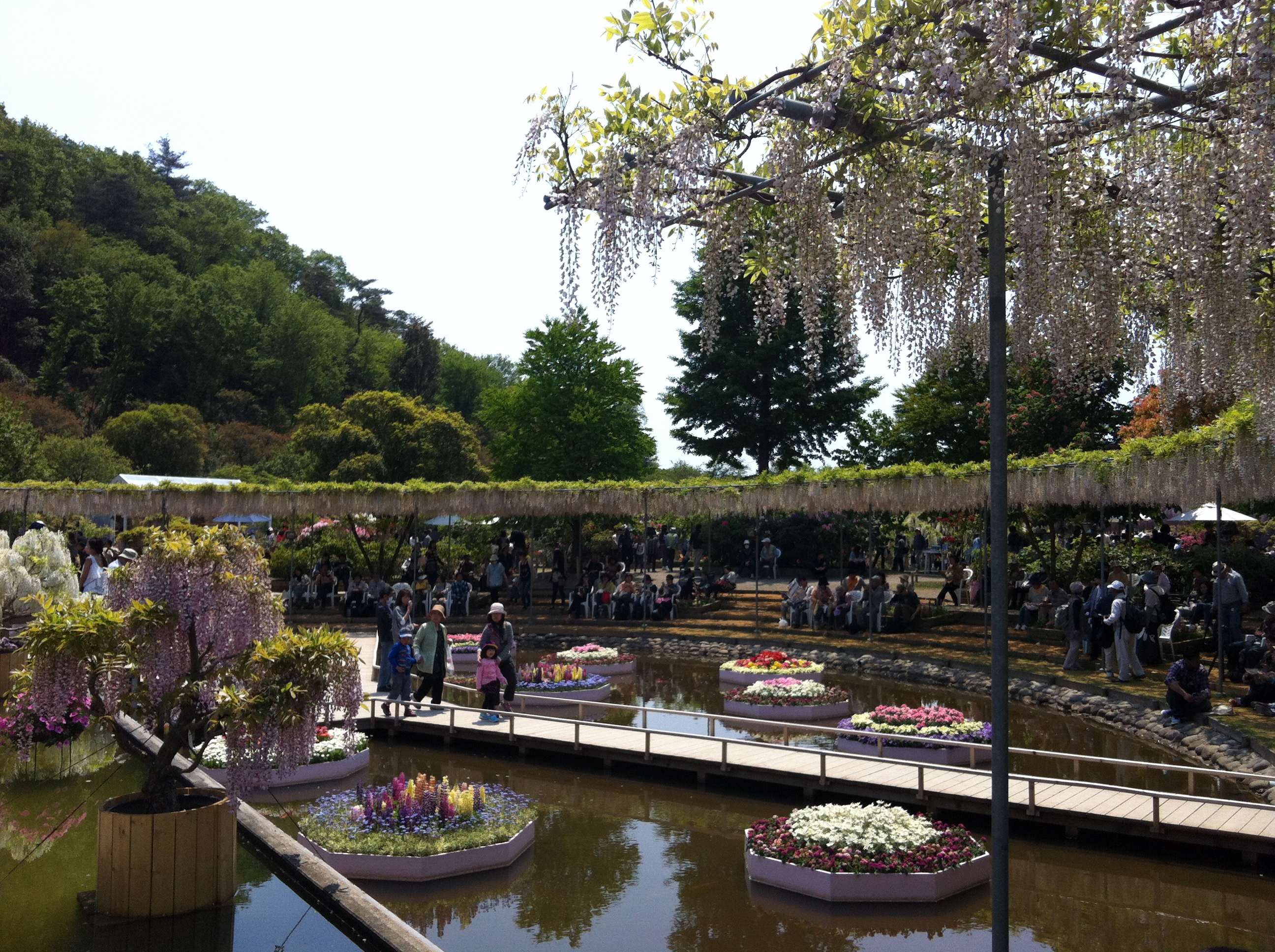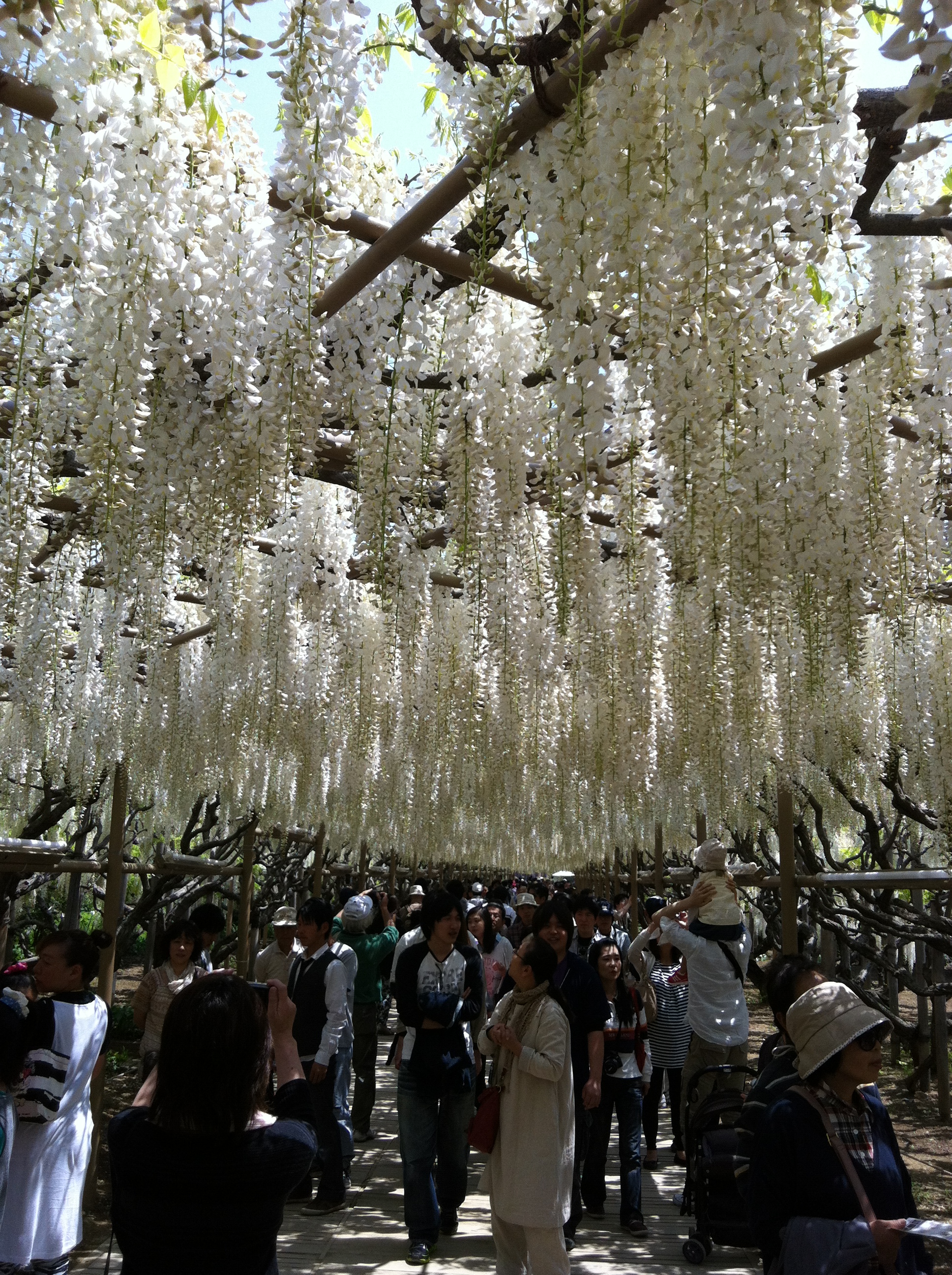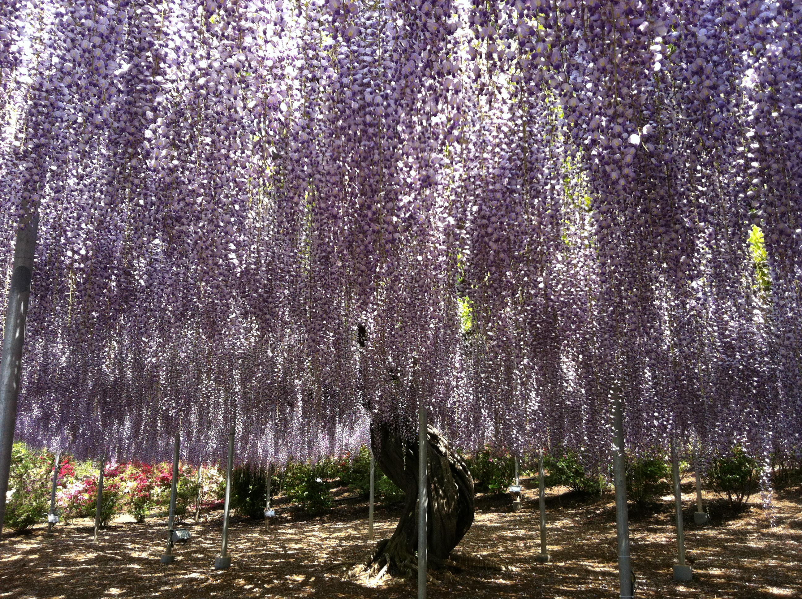 しかし、それは全体の4分の1くらい。その後、水上花壇を通って、白藤の滝、八重藤、白藤のトンネル、大藤と様々な藤のゾーンを巡りました。