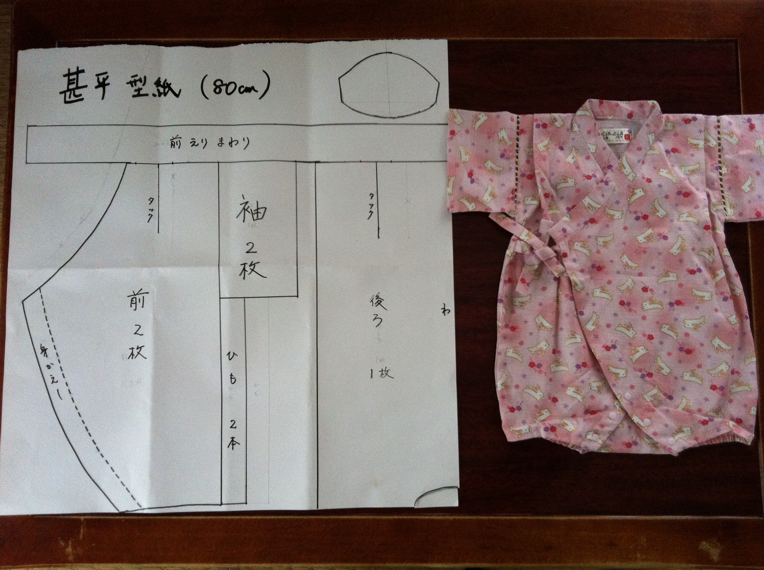 甚平の型紙は、型紙を切ってから確かめたらかなり違っていたので修正しました。作ってみたらもっと違ってたりして・・・(汗)。
