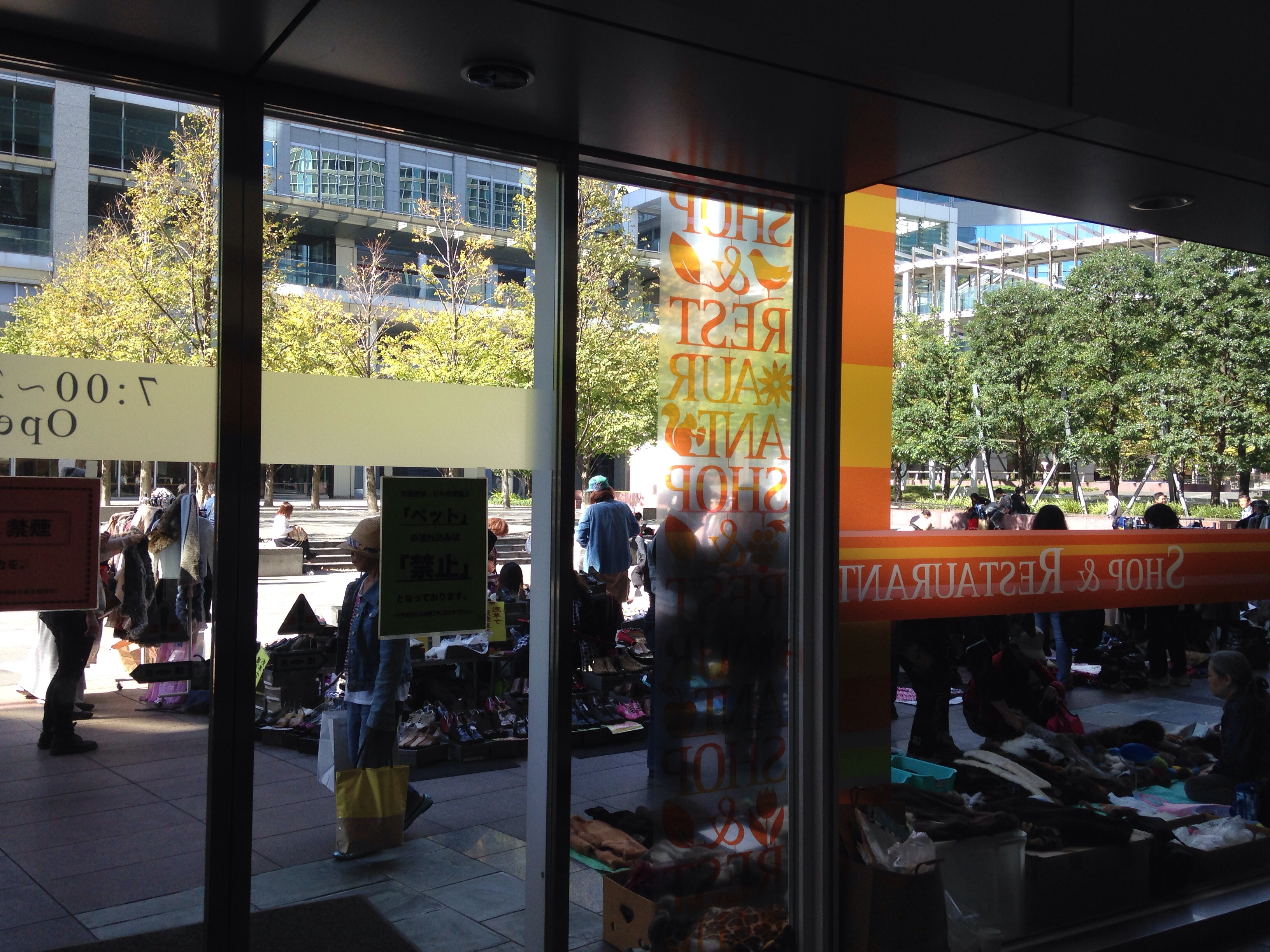 駅に戻る途中で、フリーマーケットの案内があったので、その方向へ。ビル群の中にたくさんのマーケットが広がっていました。じっくり見たらいいものもありそうでしたが、通り過ぎるだけにしました。