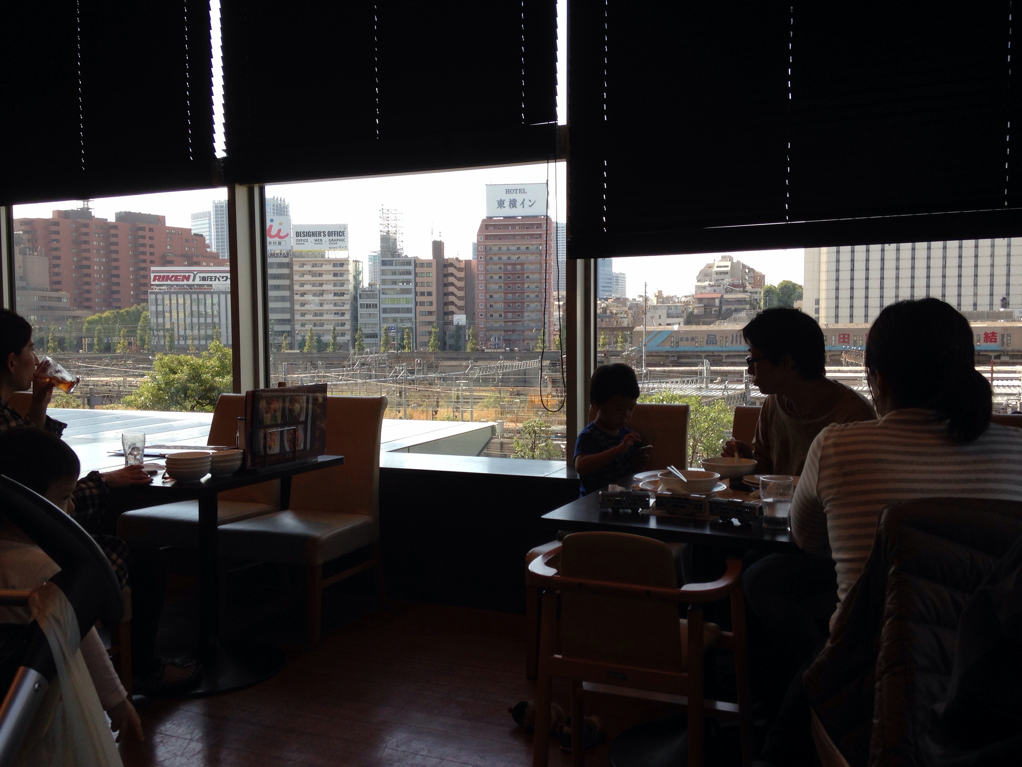 通路から一番奥のその店は、通常店舗の雰囲気とは変わって、ビル内レストランの落ち着きがあり、案内されたテーブルからは、品川駅と線路が見えて、なかなか落ち着ける場所でした。が、やはりファミレスだからでしょうか?ほぼ満席の上に、幼児子ども連れのファミリーのお客が半分以上占めていました。