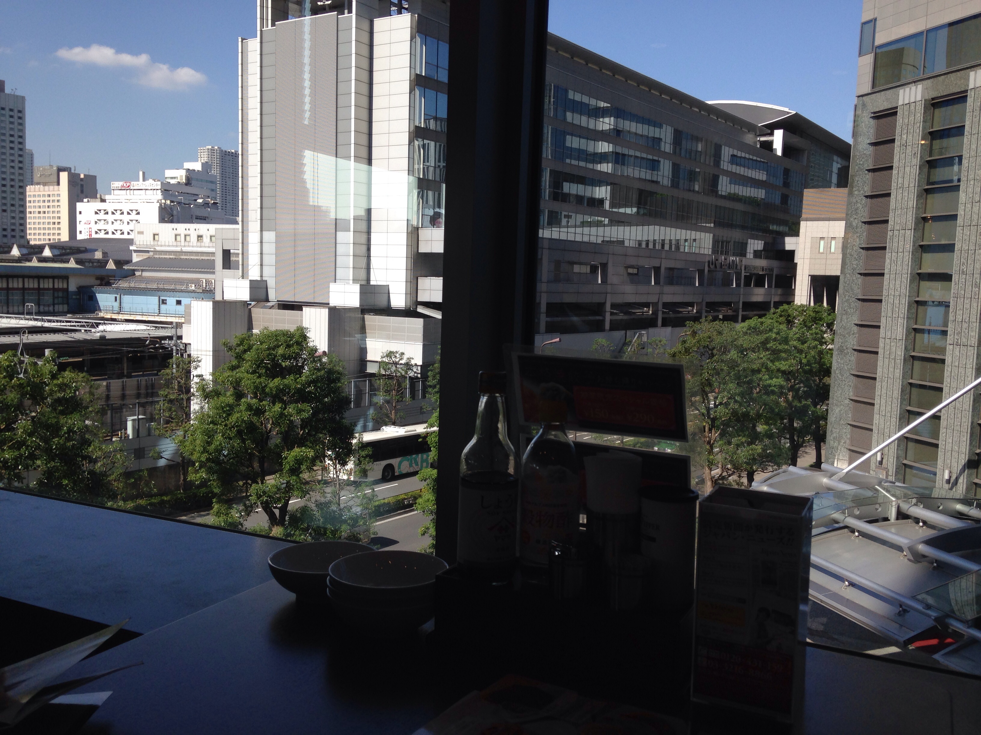 この頃になると、私たちの興味はこのビル群に移っていました。折角だから上の方で展望できるビルはないかと。ビルの2階に上がるとそこには、駅から続く大きな道が広がっていて、その通路を通って、各ビルへと移動できるようになっていました。最上階には展望フロアーは特に無いようでしたが、案内をみていると、何んとファミリーレストランが何軒か入っているのに気づきました。こんな場所に似合わないと思いながらも、では入ってみようかということになり、その中の1軒へ。
