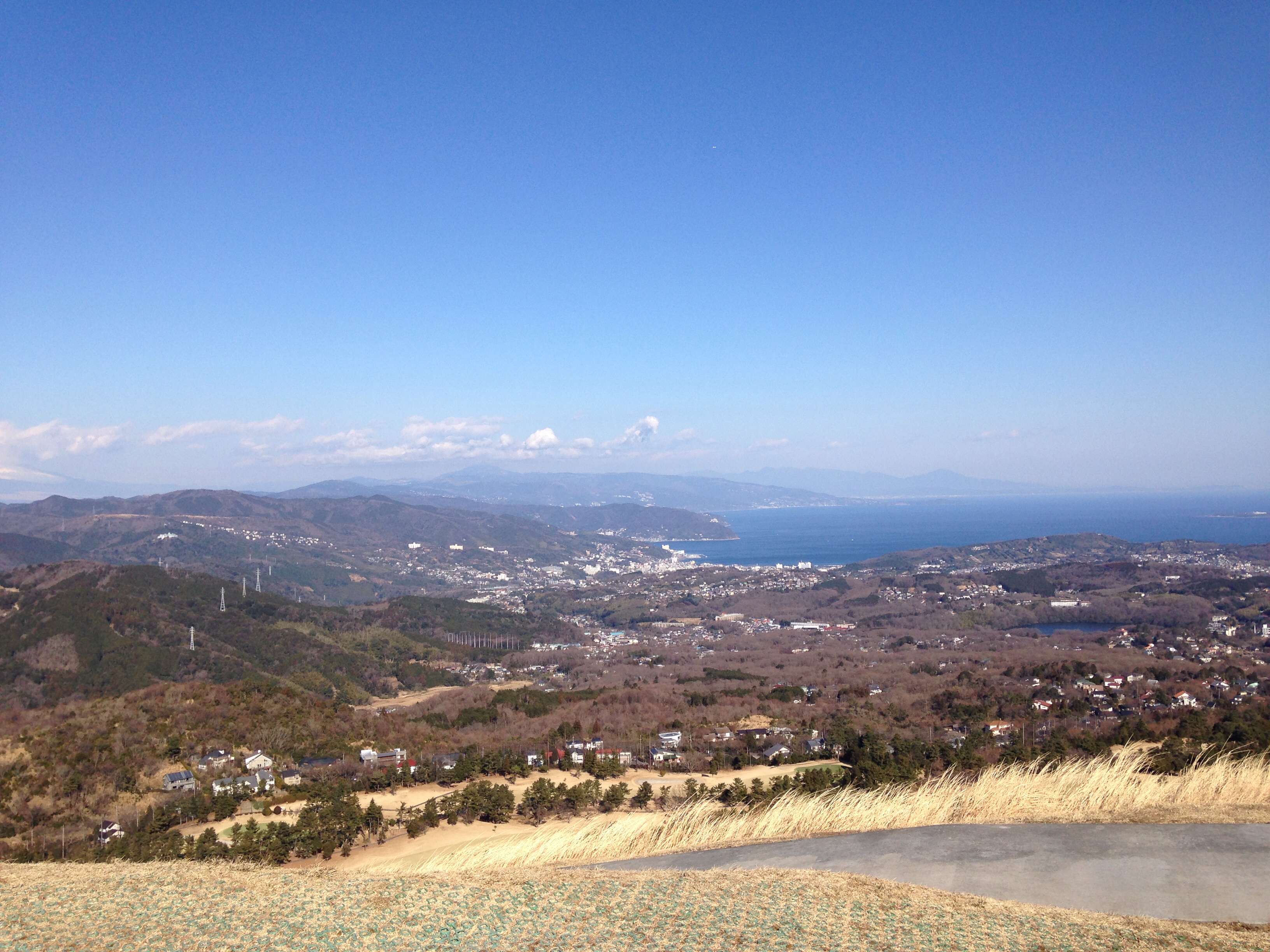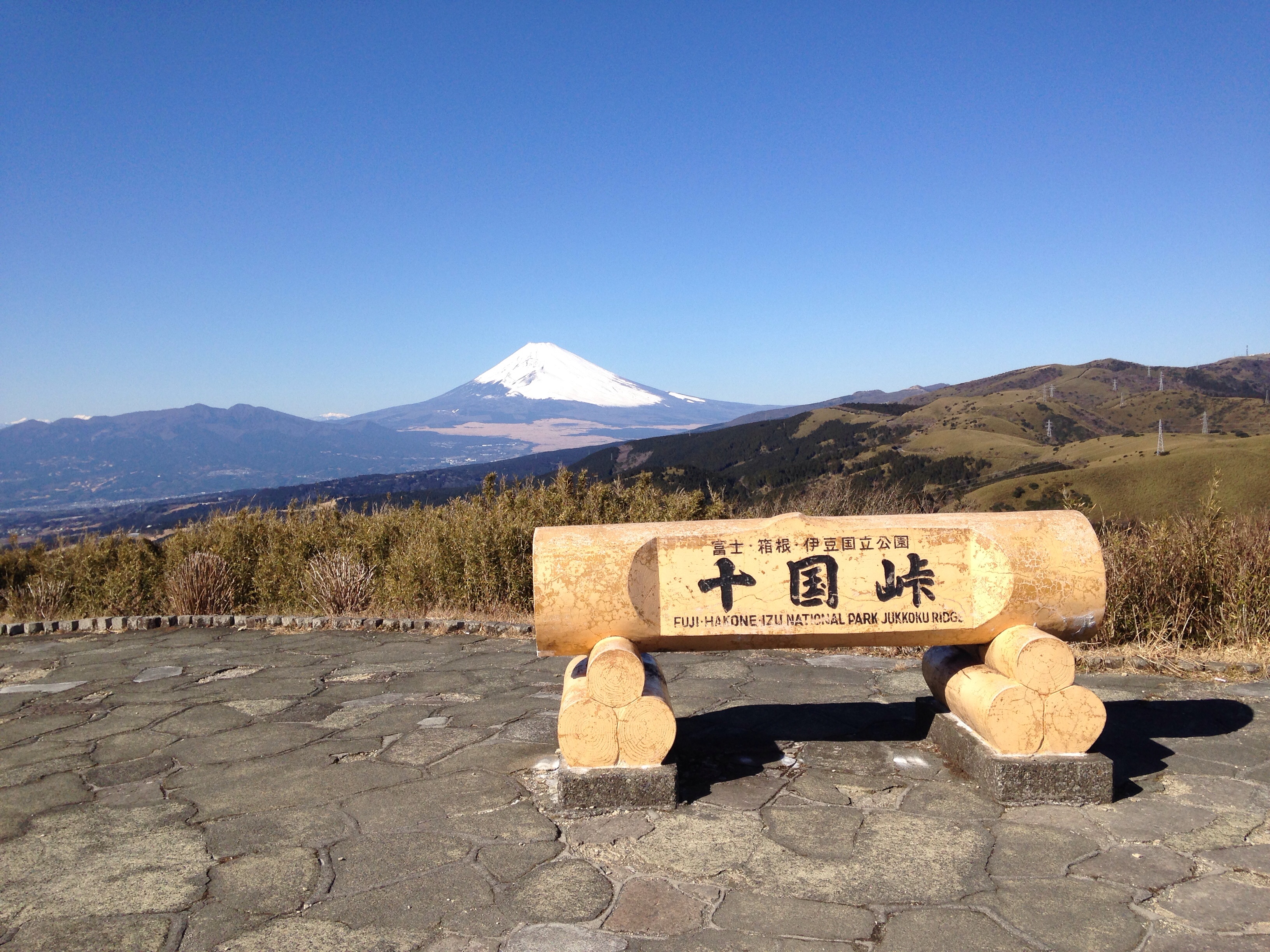 最終的には海沿いの道に出ますが、伊東までの経路は何通りかあります。今回は、西湘バイパスを小田原で降り、箱根方面を通って、十国峠で休憩をとりました。ここは以前にも河津桜を見に行ったときに立ち寄った場所ですが、今回は時間の余裕があるのでロープーエーで上まで登り眺望を楽しみました。