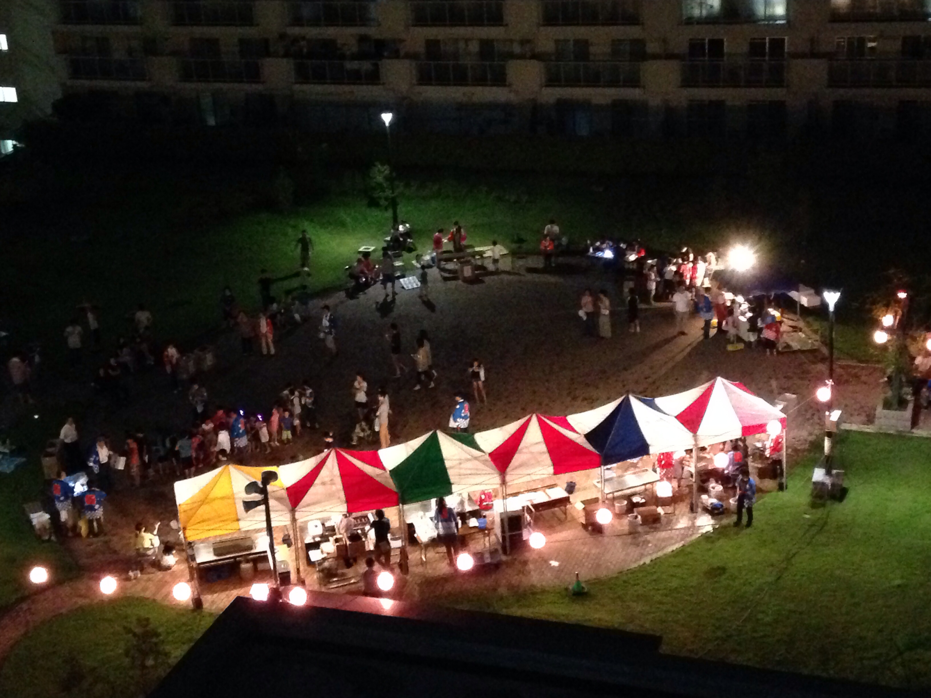 駅を出てすぐの、ウイングウイング広場公園には、ドラえもんと仲間たちのブロンズ像がありました。