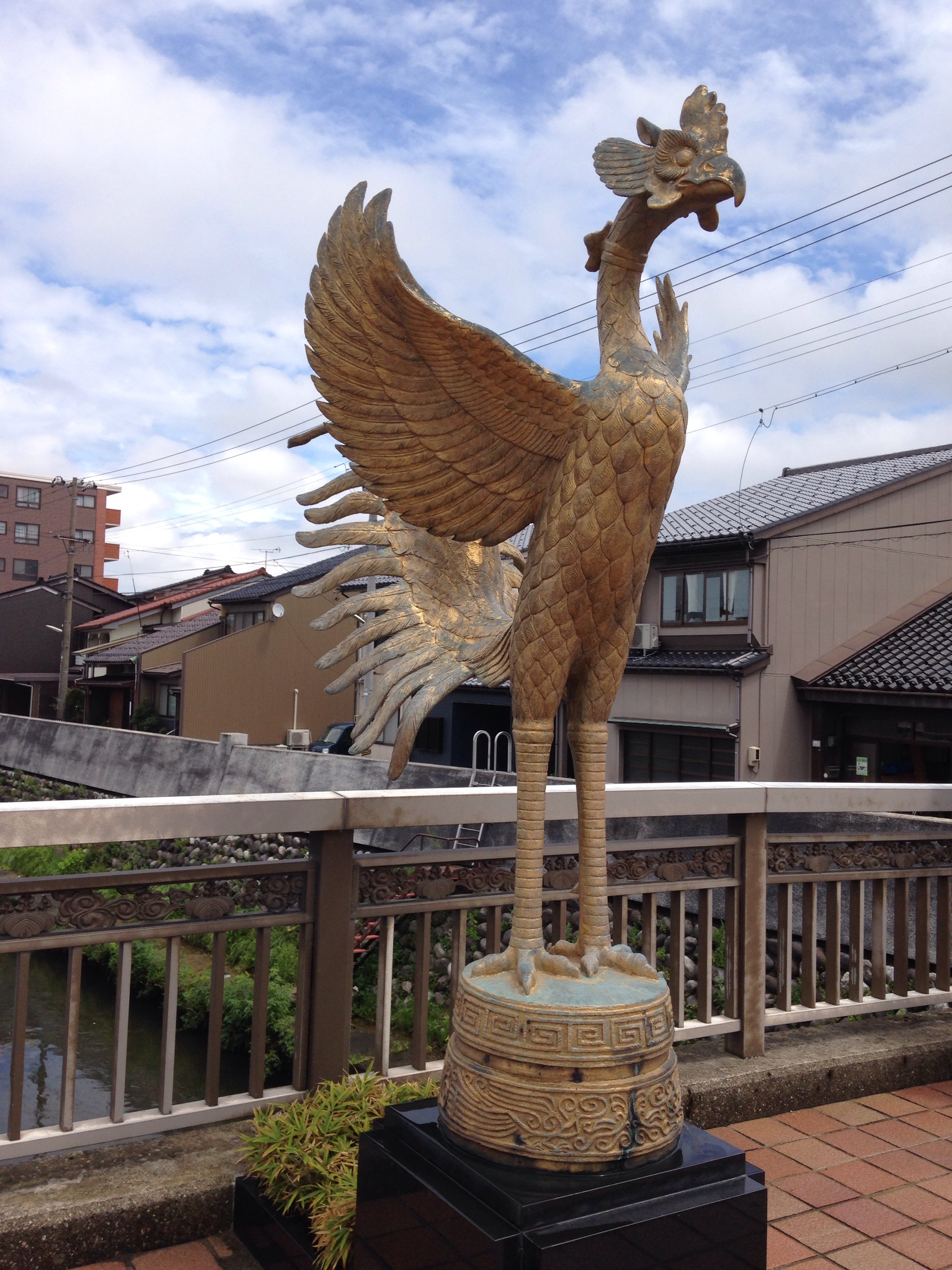 千保川にかかる橋には、派手な鳳凰の鋳物が飾られていますが、その横の説明によれば高岡の名前の由来として、中国の古い書物である「詩経」の中に、「鳳凰鳴けり彼の髙き岡に」とあるところから名づけられたそうです。