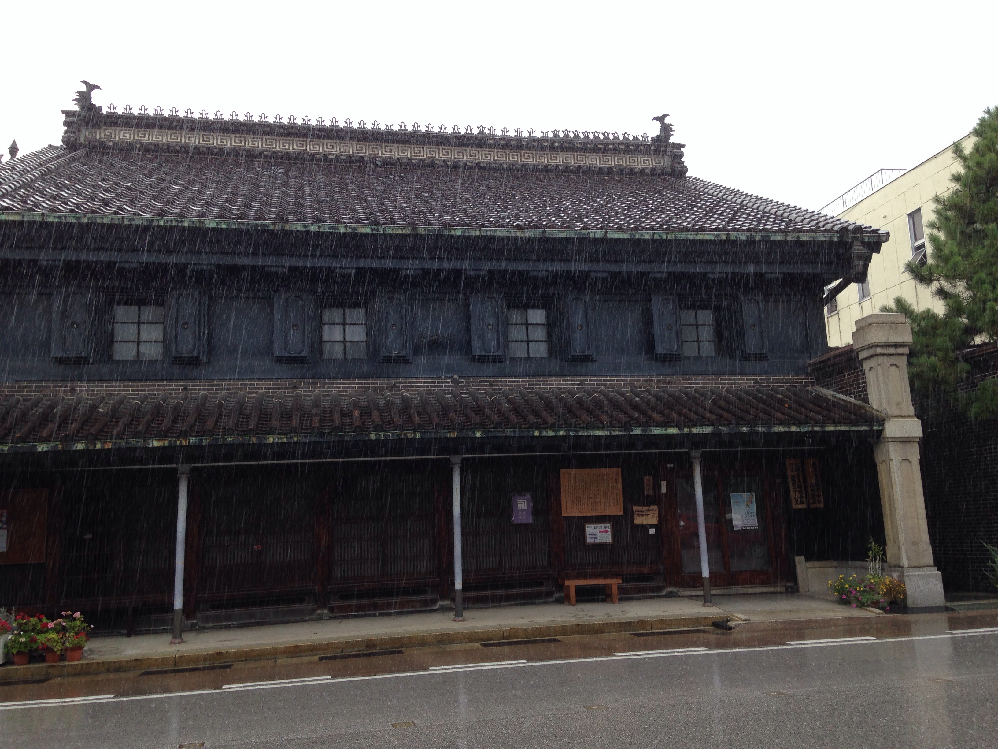 金屋町から手前に半分くらい戻った辺りに、土蔵造りの町並みがあります。赤レンガの銀行の写真を撮ったあと、その向かいの真新しい建物に入りました。そこは高岡御車山会館で、今年の5月に開館したばかりのきれいなところでした。