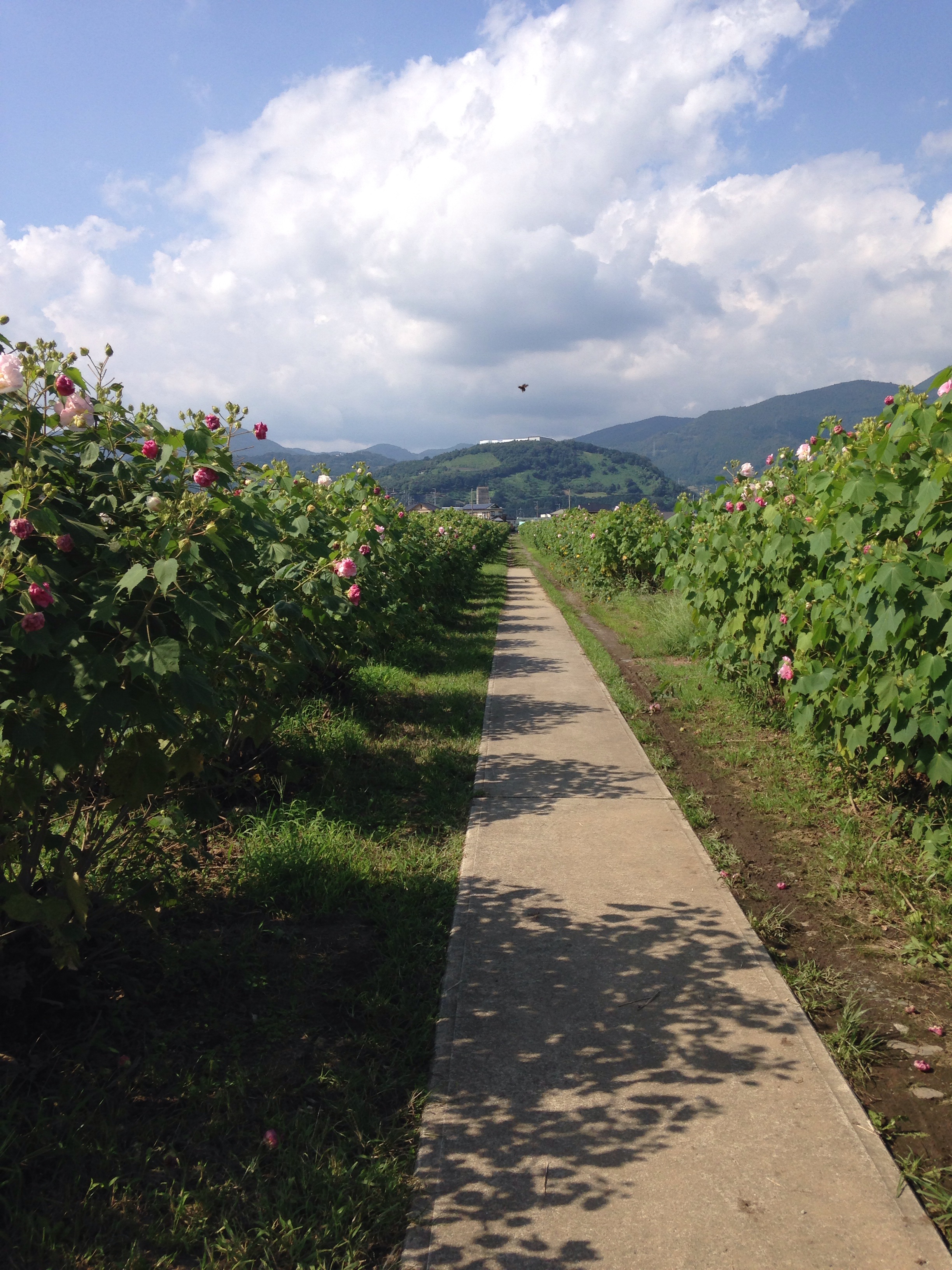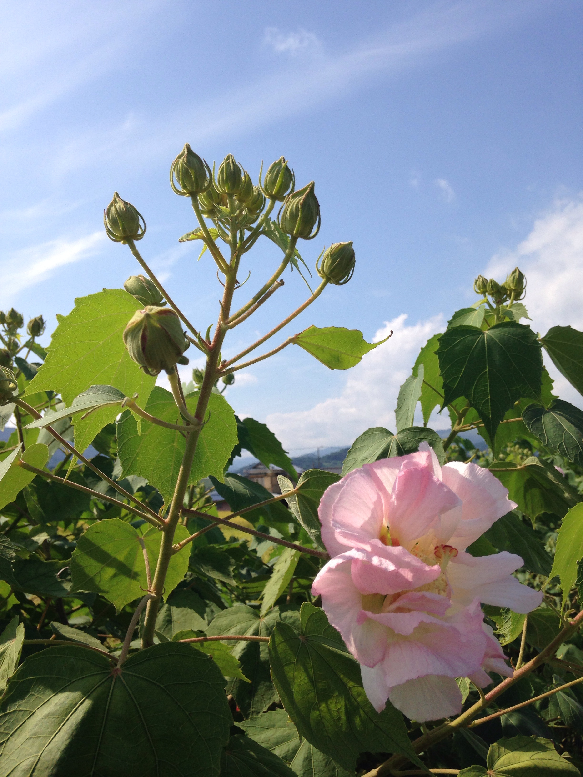 予想外の風景にすっかり心奪合われ、酔芙蓉の道を散策しつつ、初秋の風景を満喫しました。