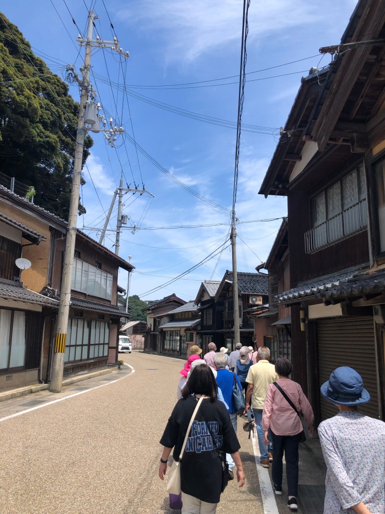 次の訪問地は、伊根の舟屋の里。ここでは船を収納する場所がある建物が海に面して立ち並んでいます。団塊の世代ぐらいのガイドさんが来られて、色々説明してくださいました。