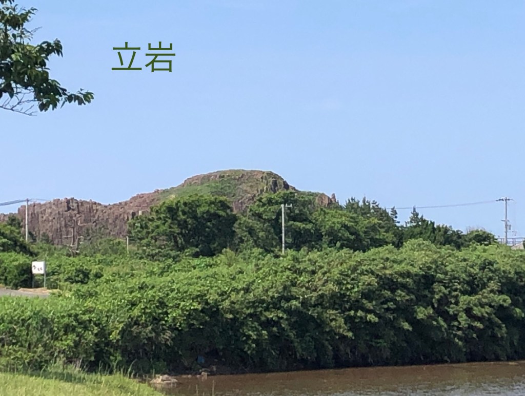 柱状玄武岩で出来ている立岩は、一応下車してまあまあ見えるところに案内してくださいました。