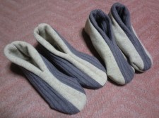 以前プレゼントした、セーターから作る上履きを、古いセーターを使って実際に作ったりしました。