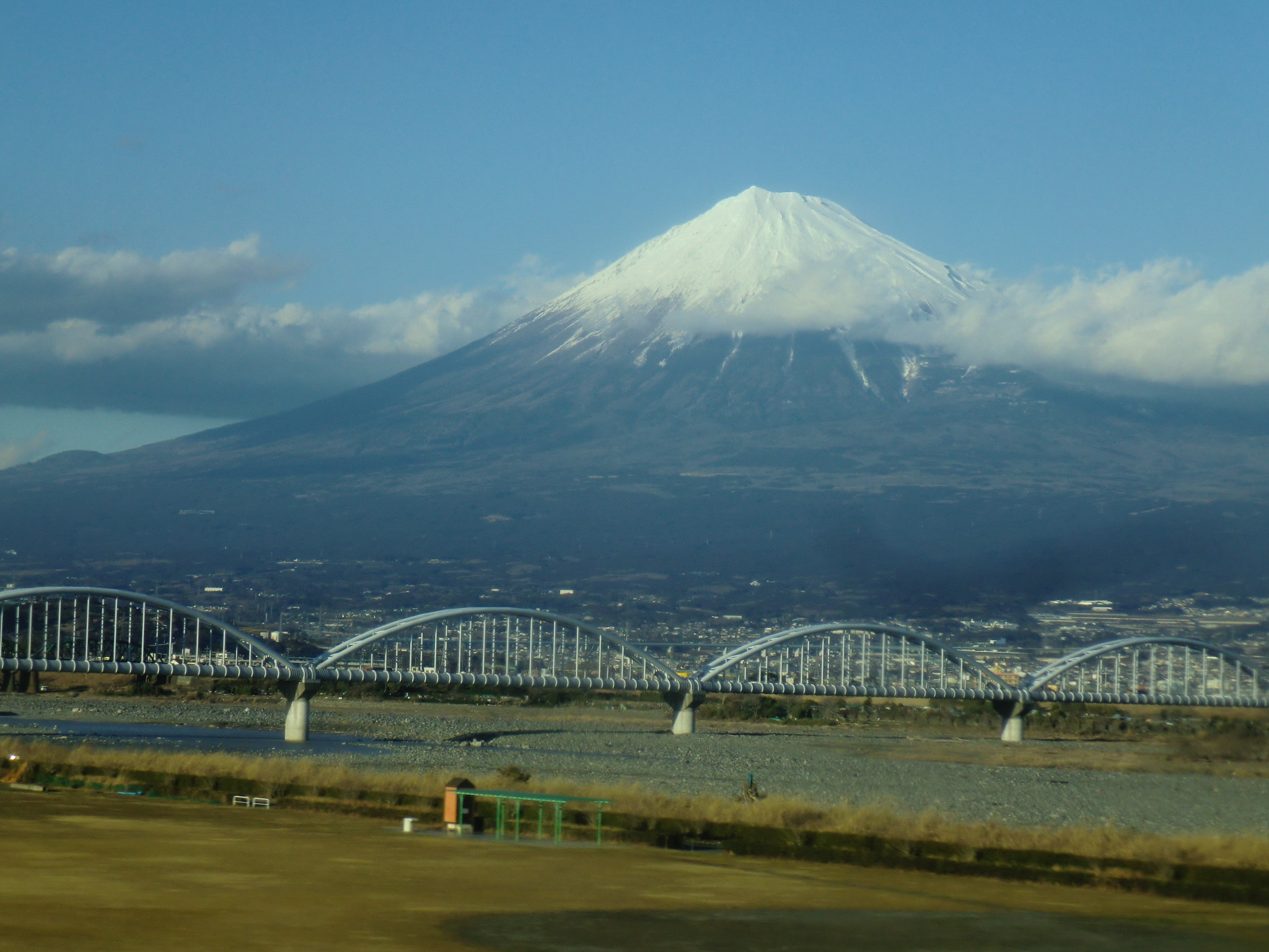 帰路は、今回は意識して新幹線の2人席、窓側に座り、富士川鉄橋撮影チャンスを狙いました。アイフォーンの撮影は失敗しましたが、デジカメはバッチリ、大きな富士山を収めることができました。