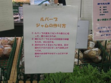 翌日、花菜ガーデン近くの「あさつゆひろば」で、ルバーブという植物がレシピと共に売られていました。
