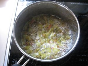 砂糖は、多く入れると長期保存に耐え、分量も多く出来上がりますが、うちの場合は、3、4割にしました。