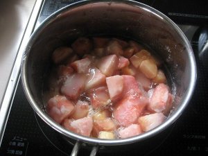 大きい実は、細かく切って、実の重量の2~6割の砂糖で、煮るとできることがわかりました。
