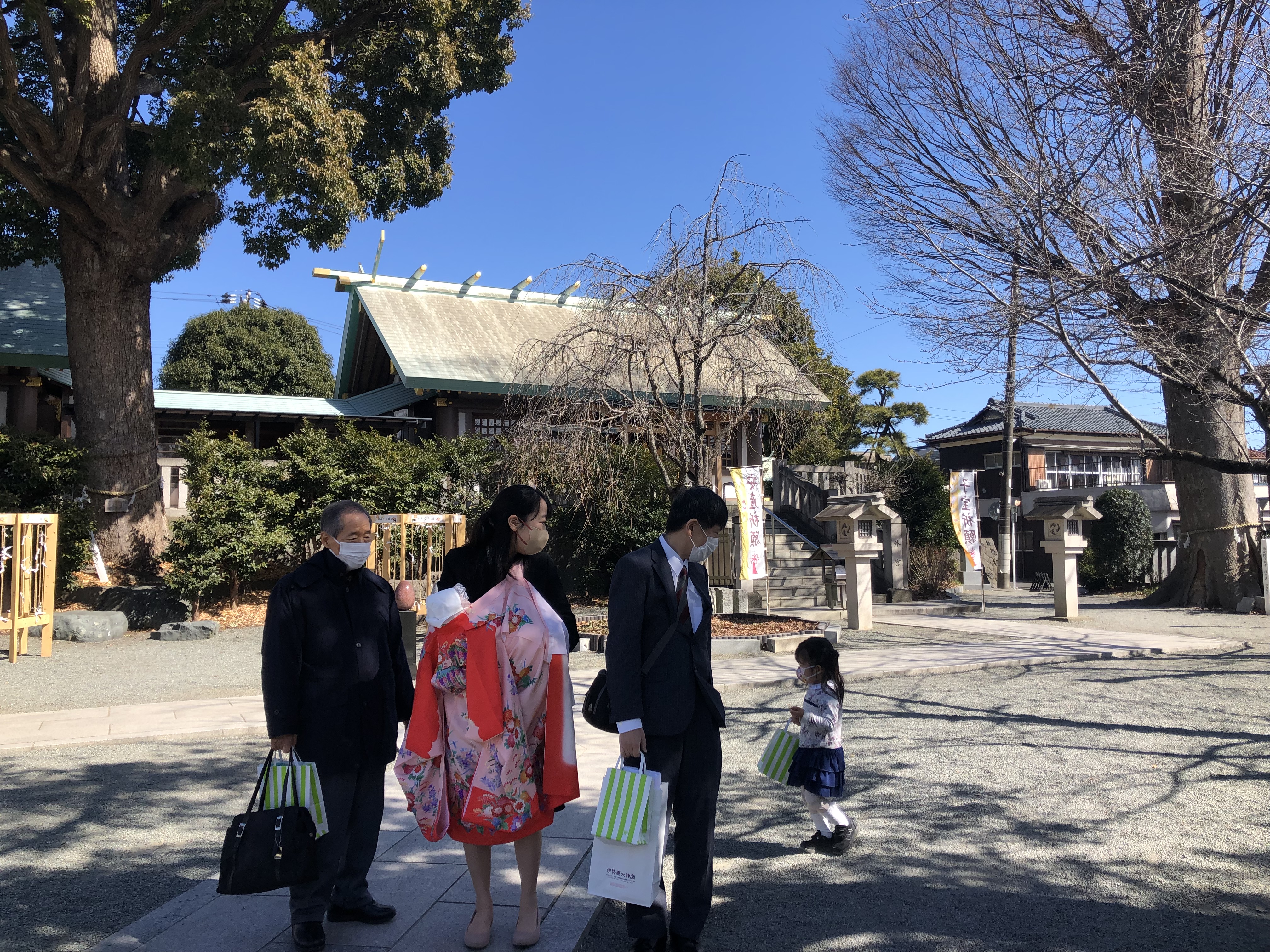 その1つ、Hちゃんのお宮参りがありこの前、上の子の3歳の七五三のお祝をした神社で待ち合わせました。この日も良いお天気で、少しの時間でしたがお参りと記念写真で、記憶に残る出来事でした。