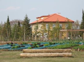 チャペックハウスの前の、野菜の花コーナーでは、春菊の花がきれいに咲いていました。大根の花などもあり、正直どれも見るのははじめてで、少々感激しました。