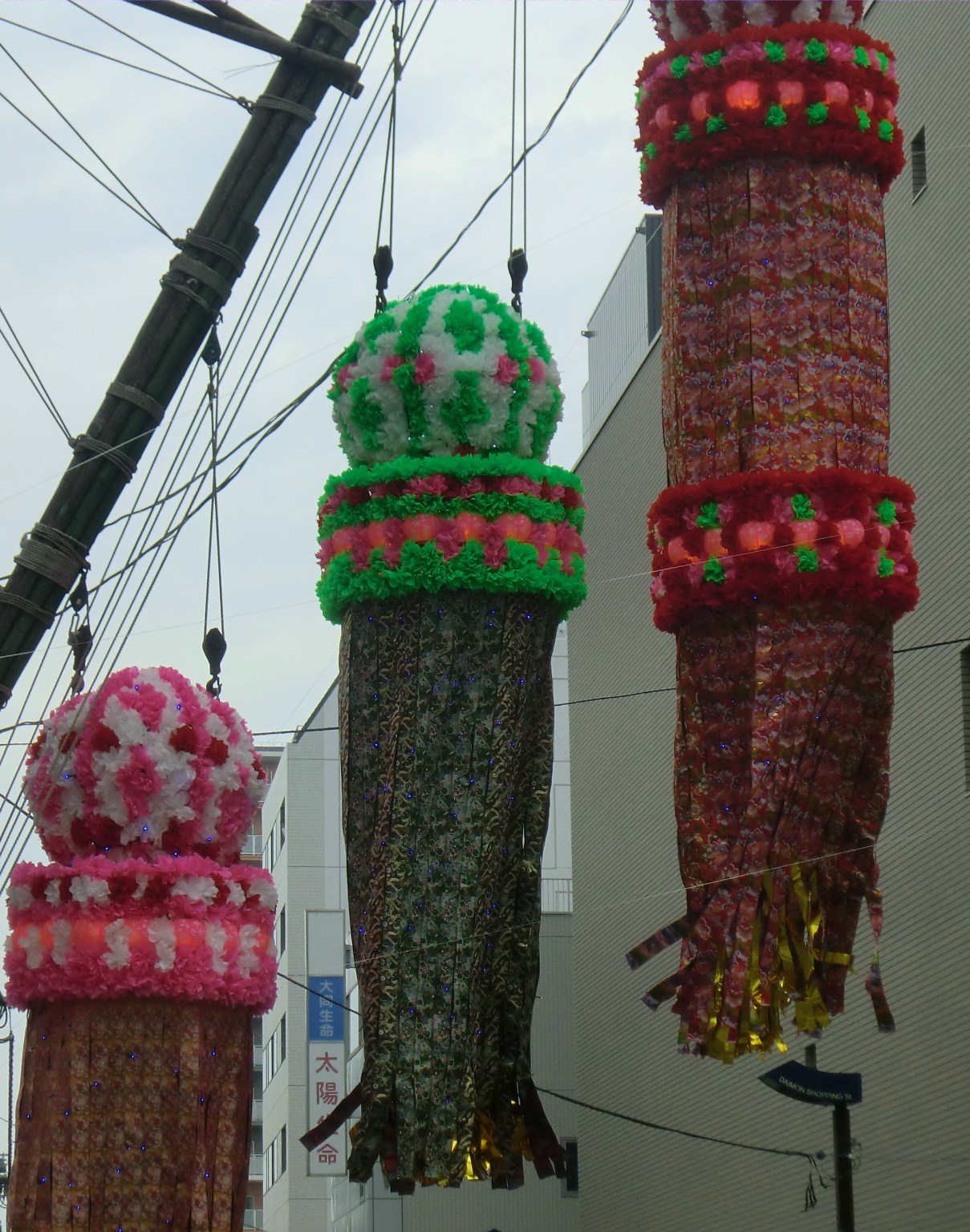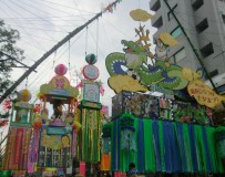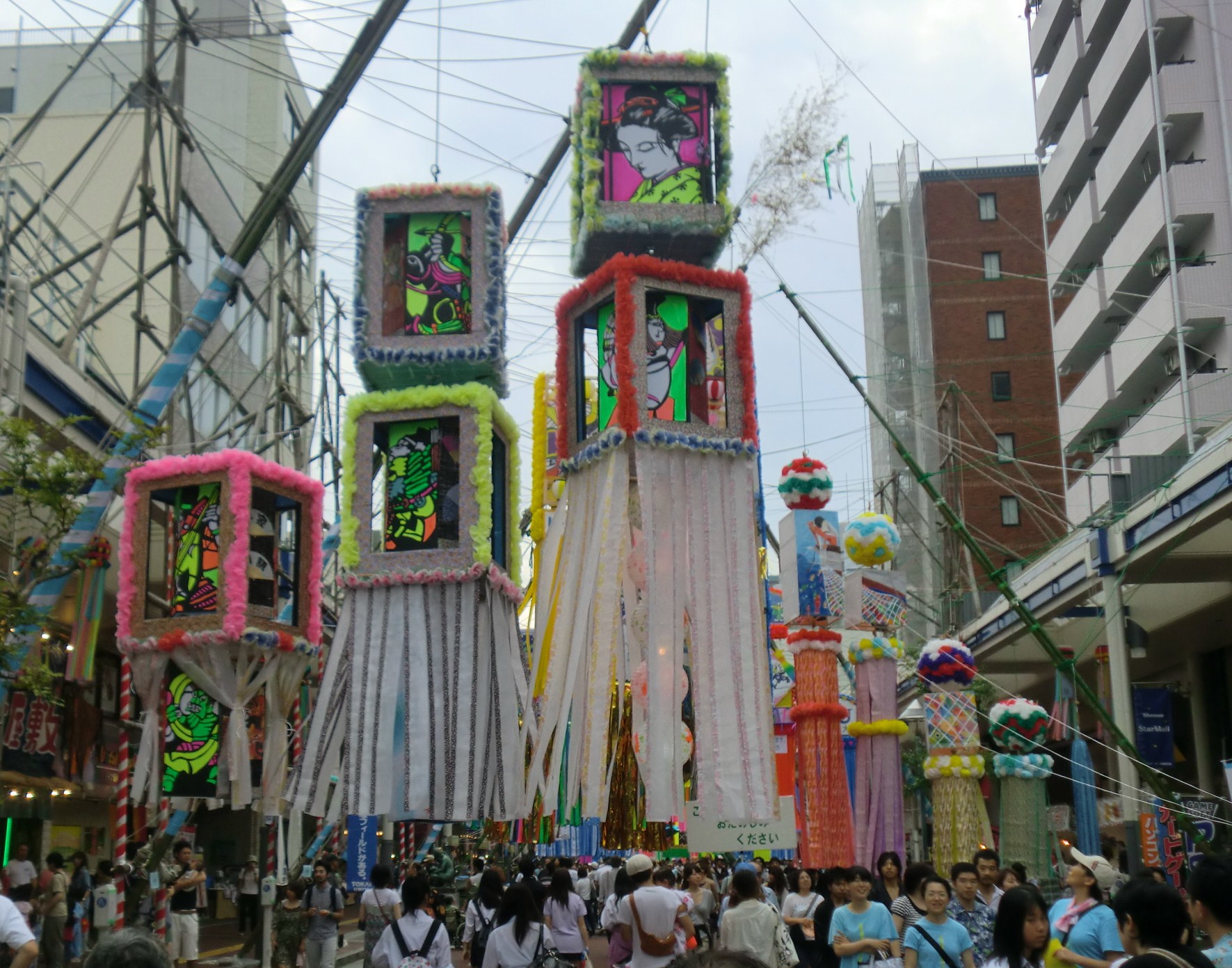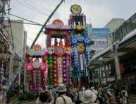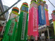 家にいると、つい行きそびれるのですが、今年は初日の日に、集まりが少し早めに終わったので、ぐるっと見て帰りました。人もほどほどで、昔ほど笹飾りも密集していませんが、カラフルな浴衣姿や夫婦、親子連れなどの楽しむ姿が、微笑ましい、いい雰囲気でした。今までの有名どころの笹飾りや目についたものを写真に撮りました。