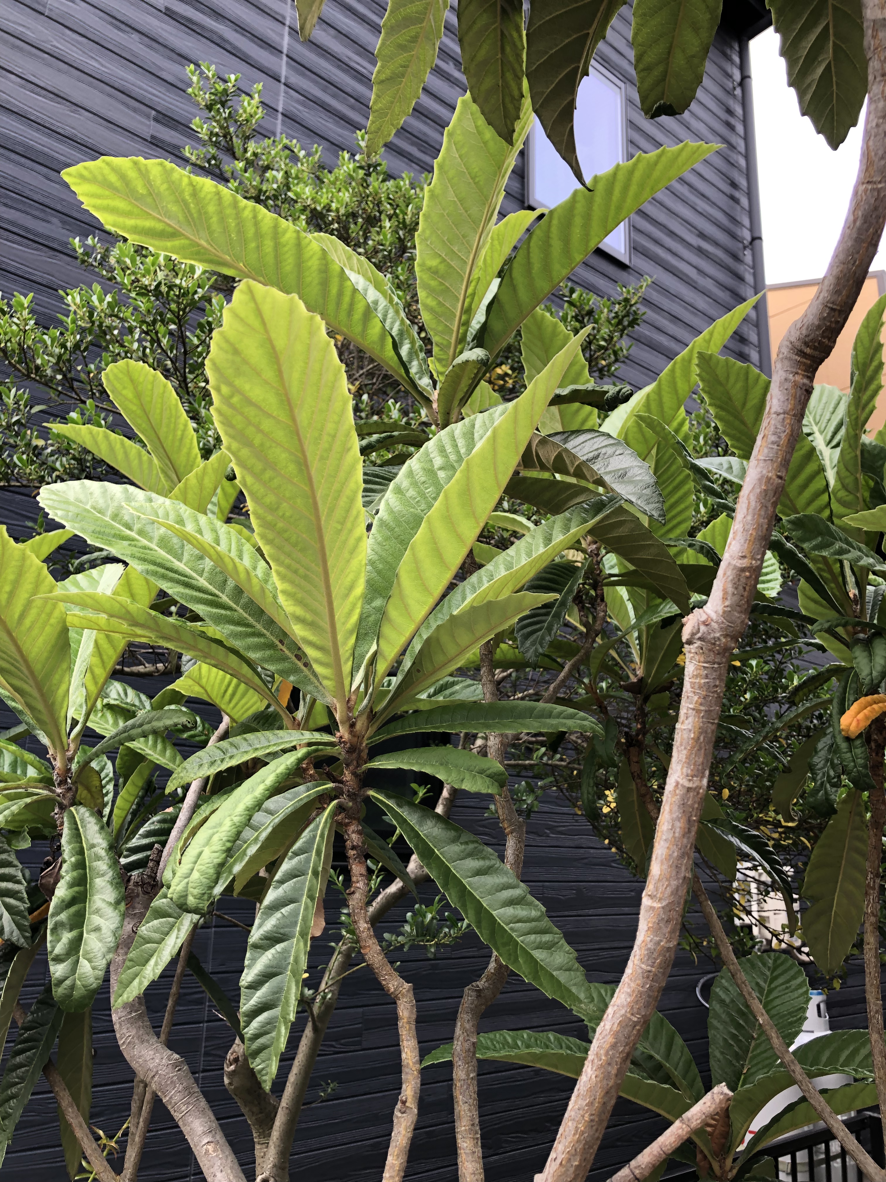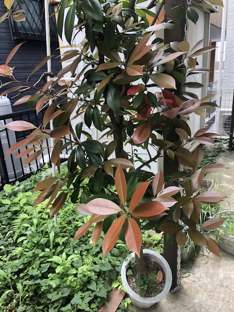 こんな感じにうちの庭にある植物は、何かのきっかけで手に入れたものばかりで、その1つ1つに物語があります。次の季節に移ると咲き始めるガクアジサイは京都在住の時に鉢植えで育ててたもの。ぶどうは山梨のブドウ園で苗木が1本10円のような感じに売られてたもの(葡萄としての筋はいいかも)。ビワはこれも京都の知人が種から鉢植えで苗木に育てたものを頂いた。レッドロビンは横浜のどこかのパークでお持ち帰り自由にという苗木。住み始めたころに植えたものは殆ど諸般の事情で姿を消し入れ替わったが、唯一残っているのが、柘植の木です。その昔は、ヒバの木と月桂樹にはさまれてあるのかないのかという時代もありましたが、今や一番背の高い老木となりました。