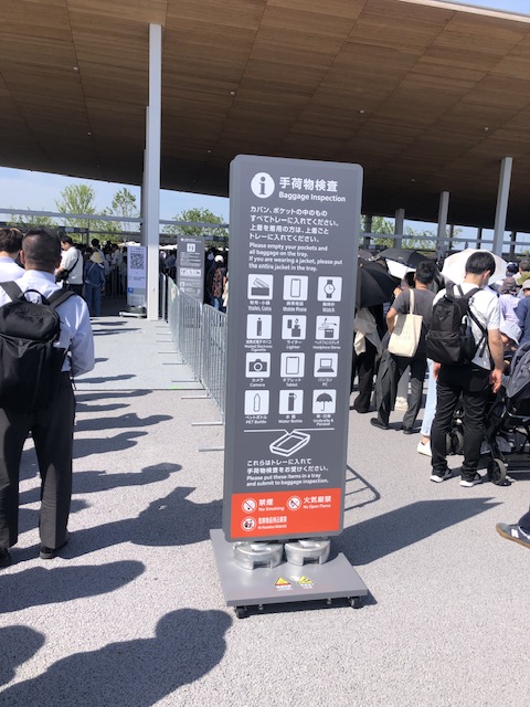 入場ゲートまでもまた回され、遠くそして並び、手荷物検査の後、無事に入場することが出来ました。入場のQRコードは、あらかじめ首にぶら下げるグッズを注文してあったのでスムーズでした。